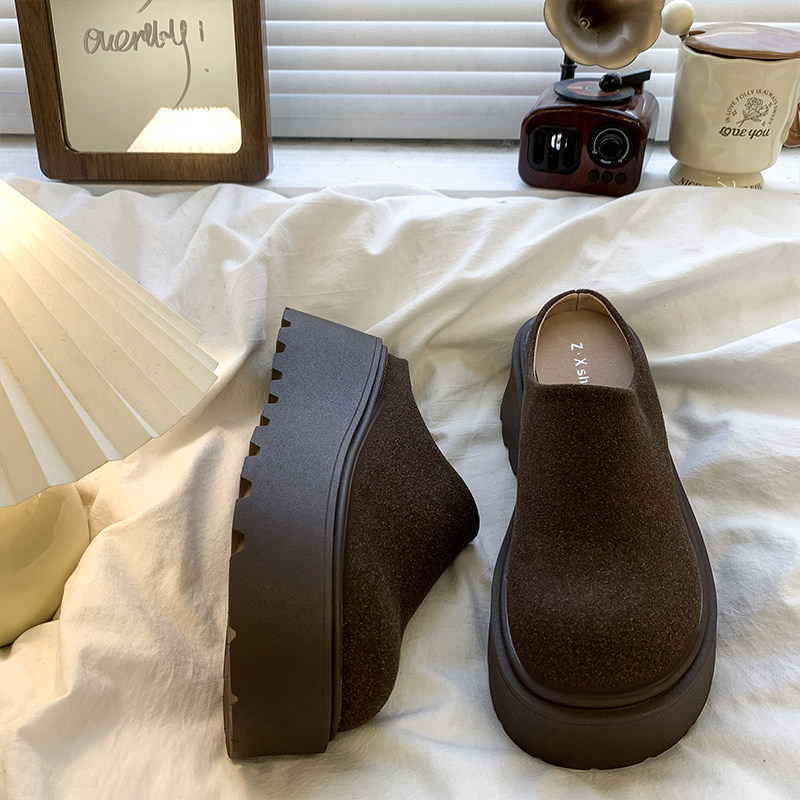叁叔家~内增高勃肯鞋女加绒秋冬保暖毛毛半拖外穿厚底博肯鞋