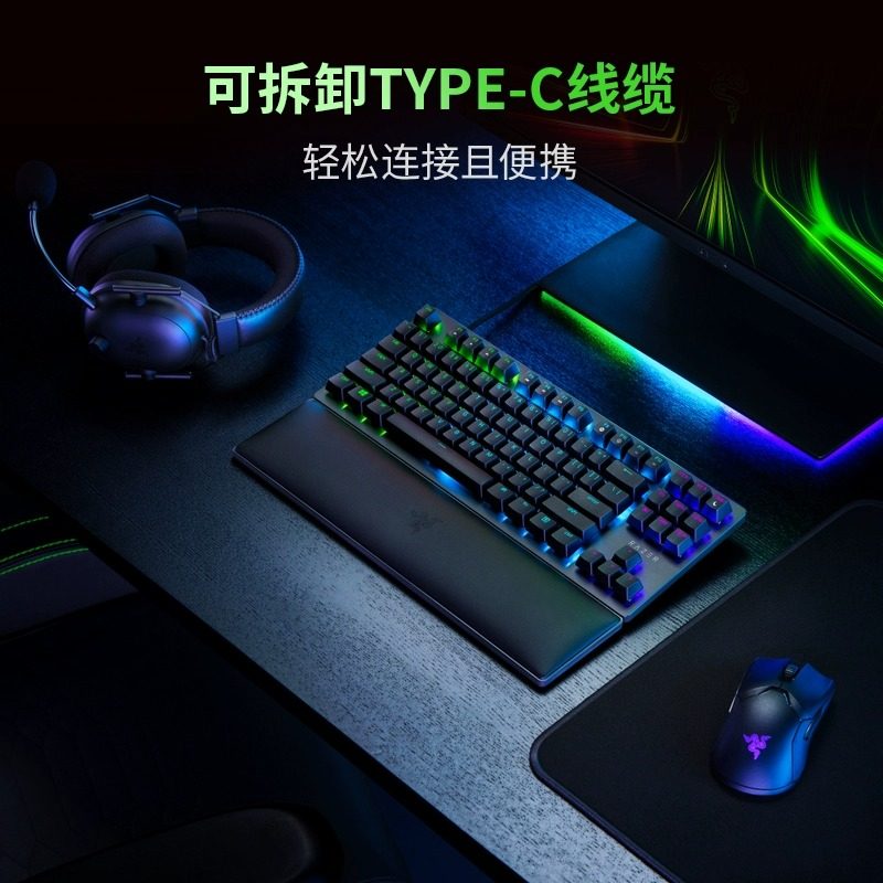 Razer雷蛇猎魂光蛛V2竞技版87键粉晶光轴笔记本电脑游戏机械键盘