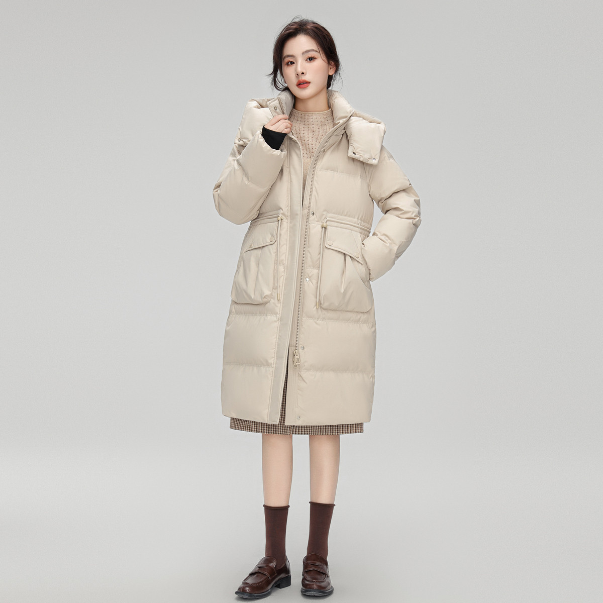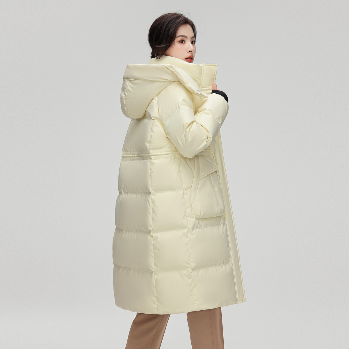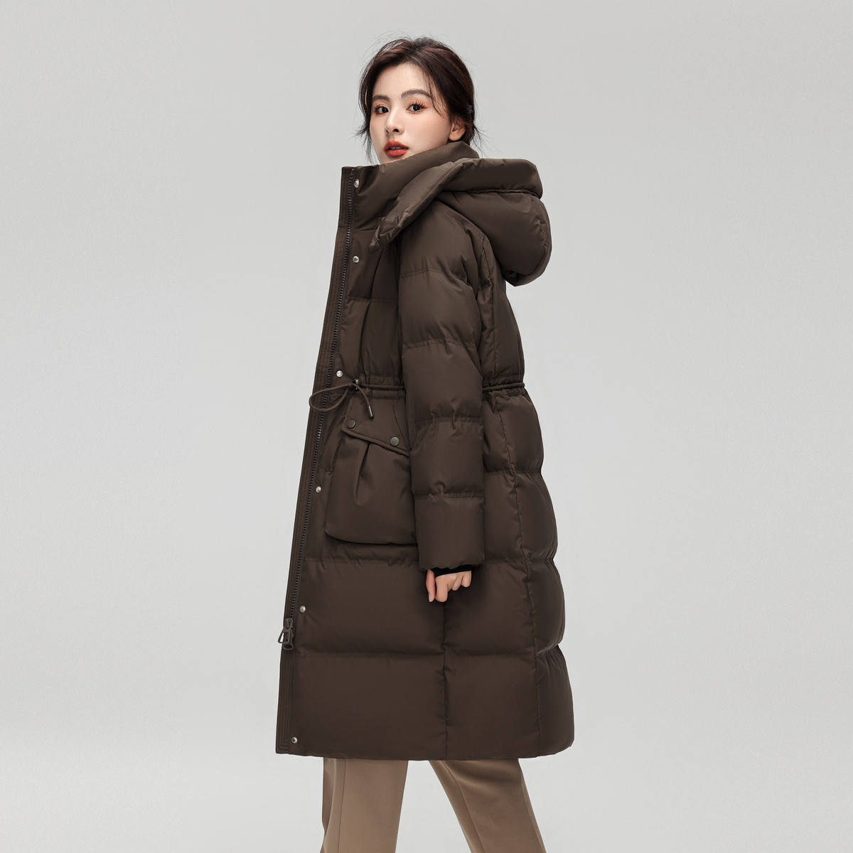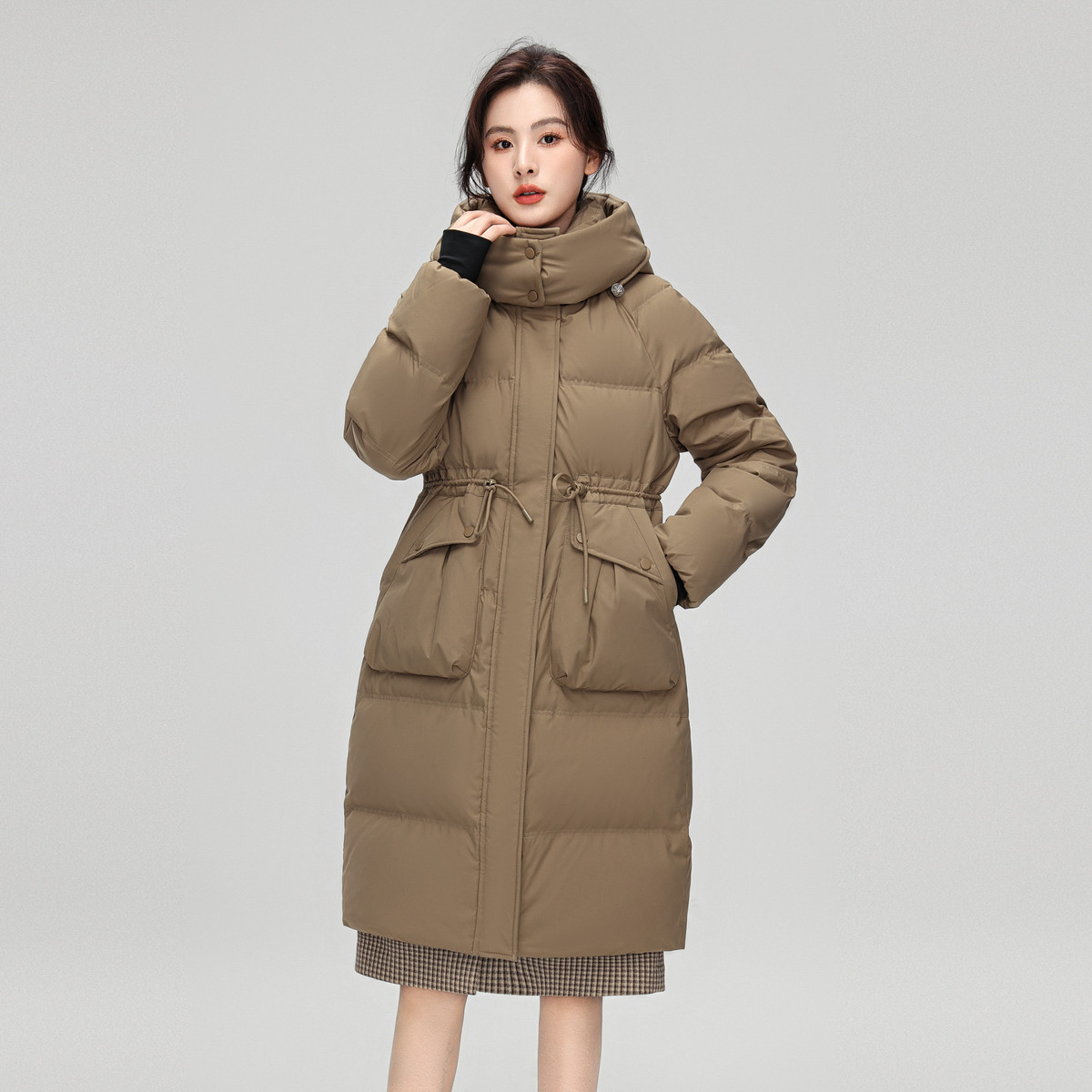 雪中飞2025冬新款女士中长款可拆卸帽羽绒服韩版收腰显瘦加厚柔美