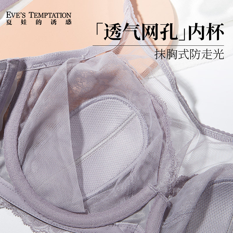 夏娃的诱惑内衣女大胸显小全罩杯薄杯蕾丝防下垂收副乳抹胸式文胸