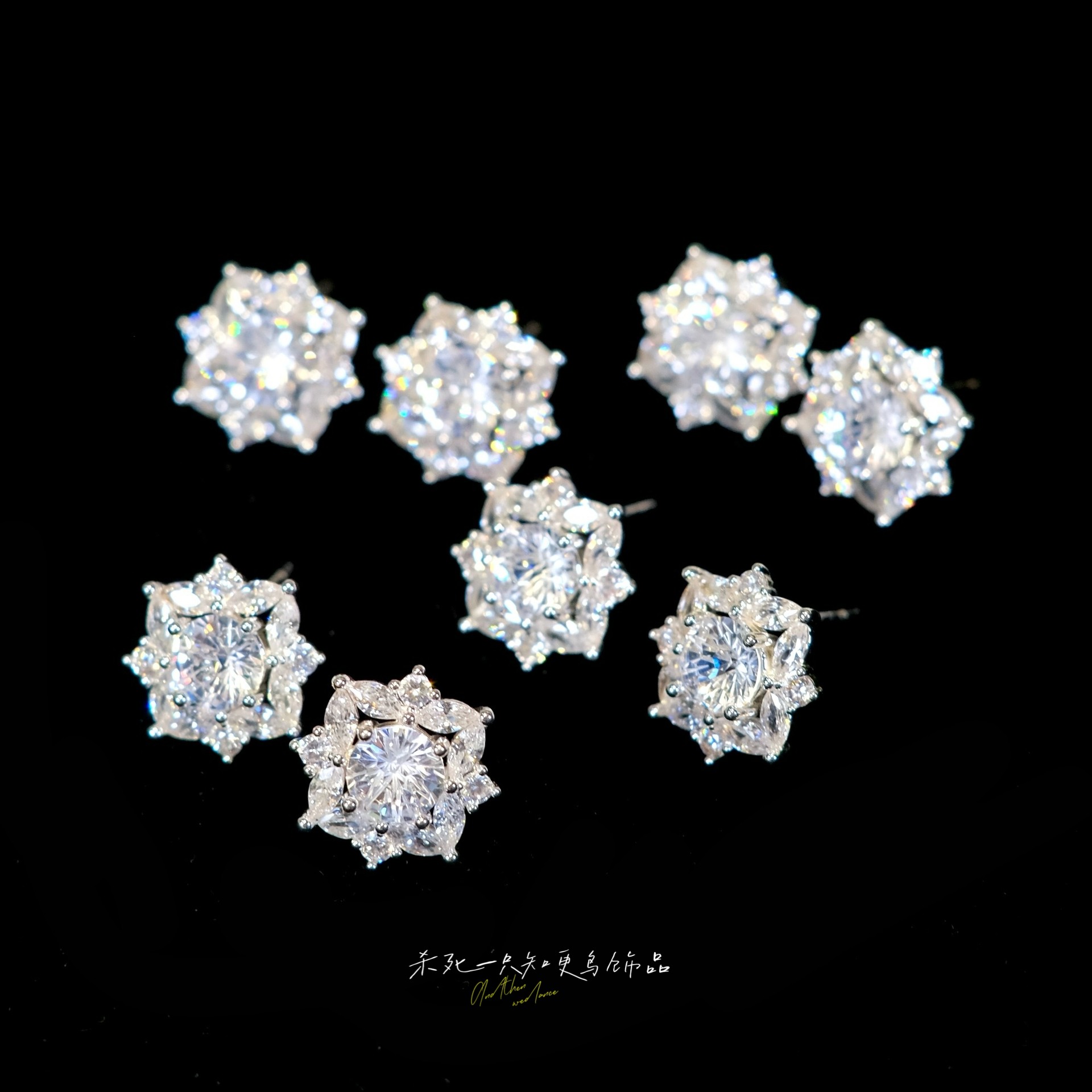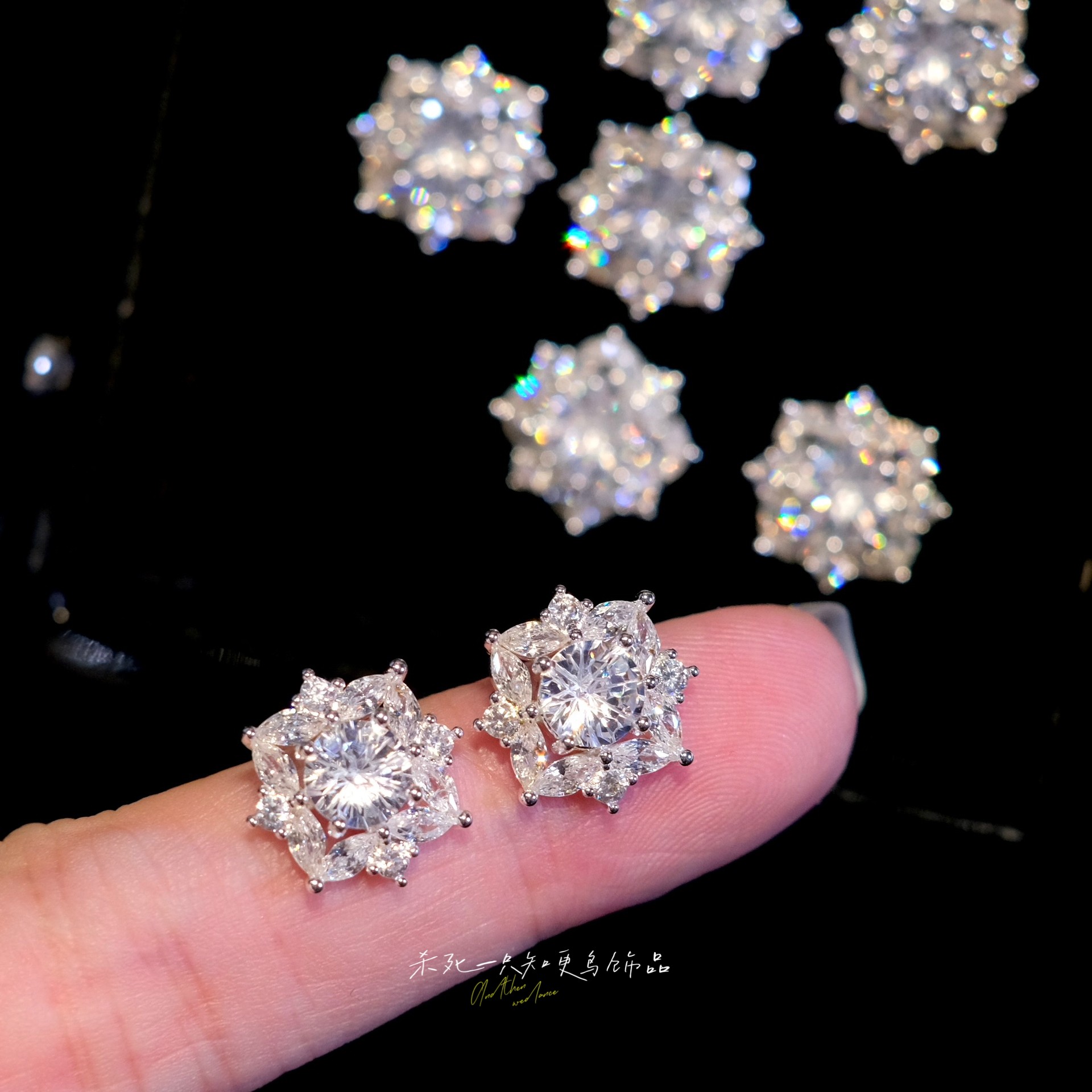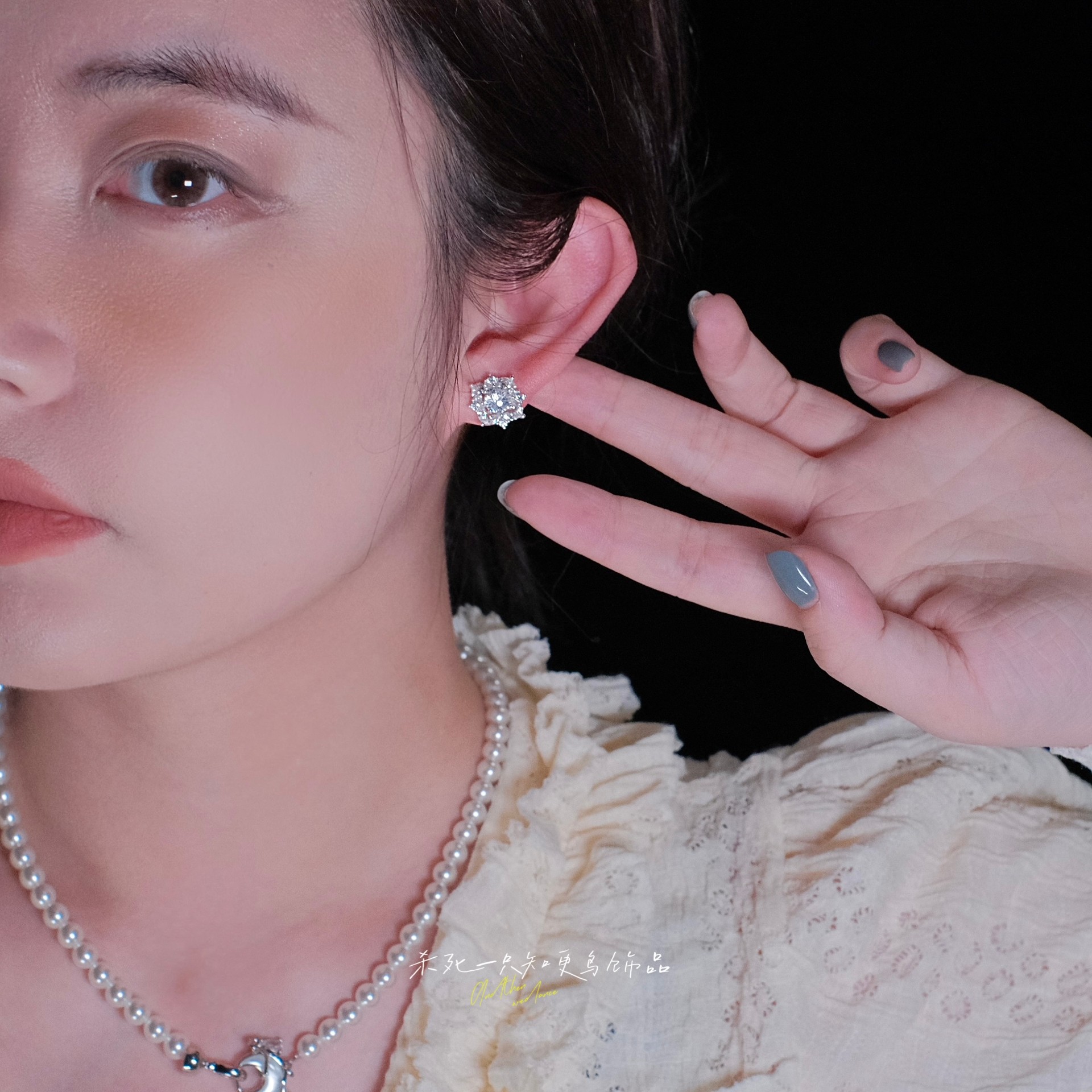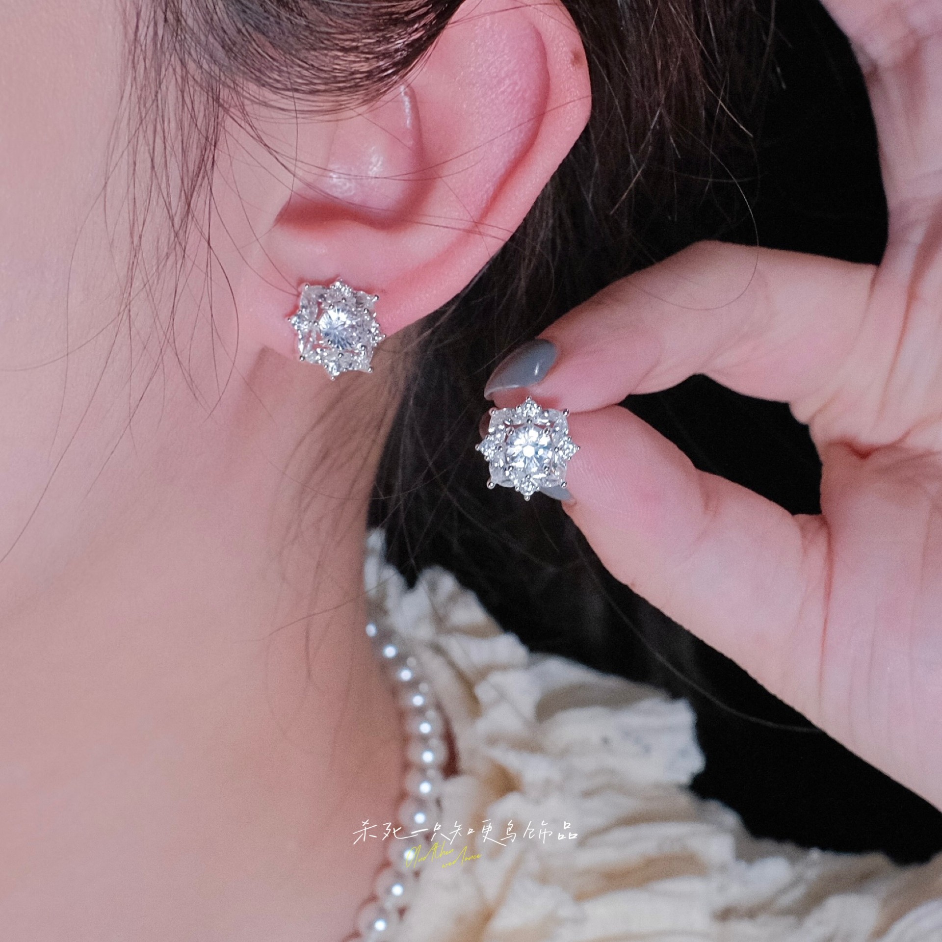 《月落星河》法式气质轻奢满钻锆石爆闪925银耳钉精致无耳洞耳夹