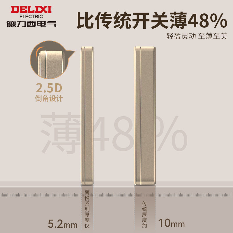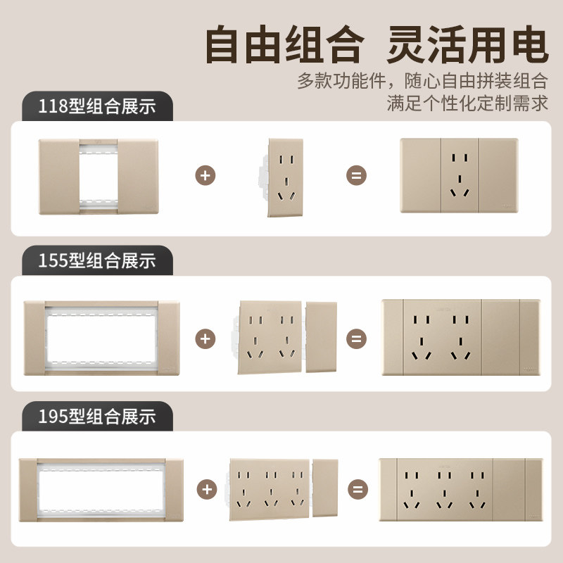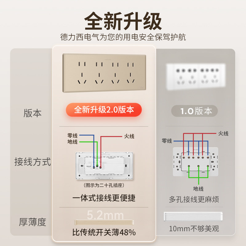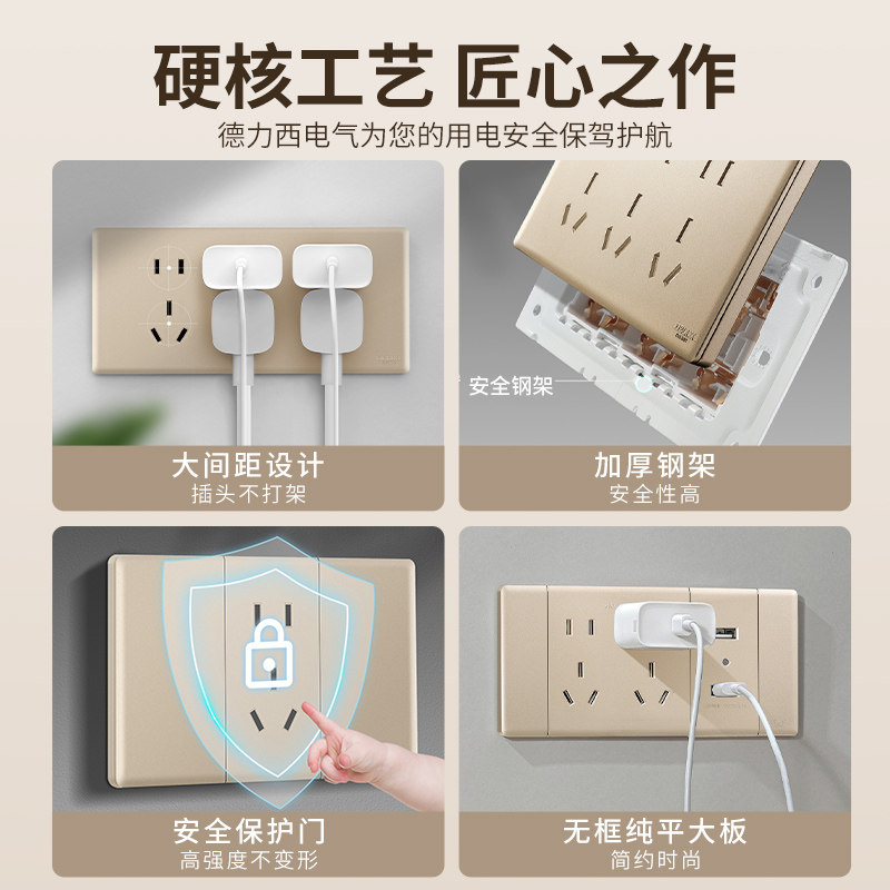 德力西超薄118型开关插座家用墙开奶油风五孔十孔16a大板金色696