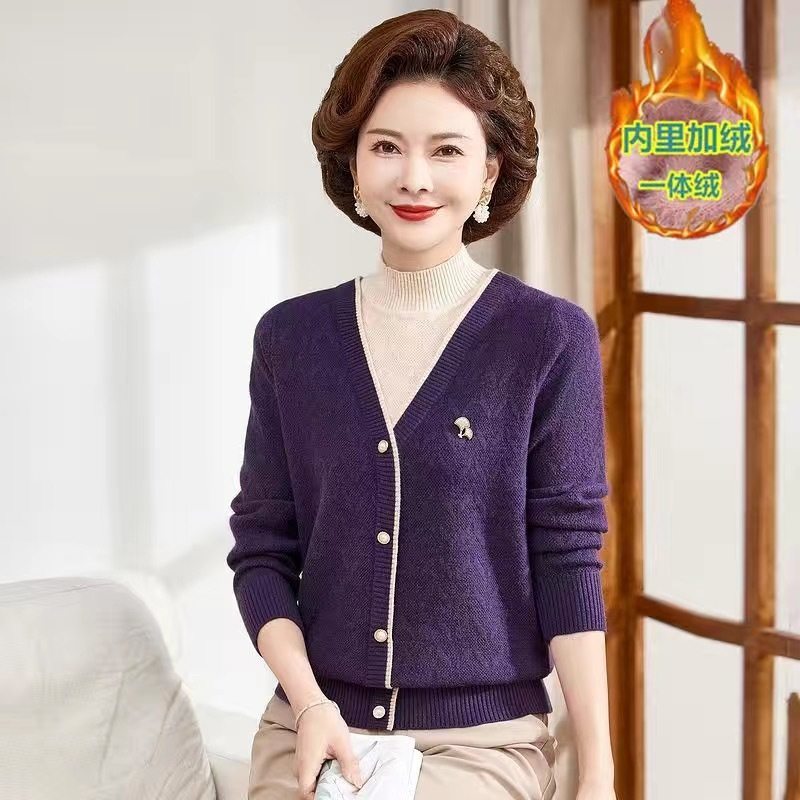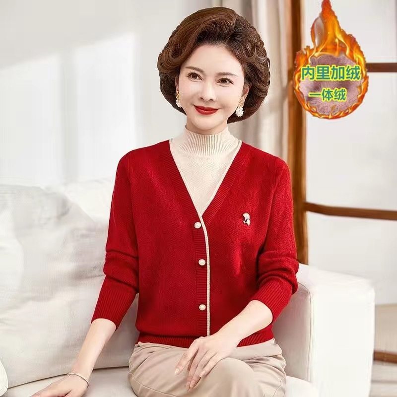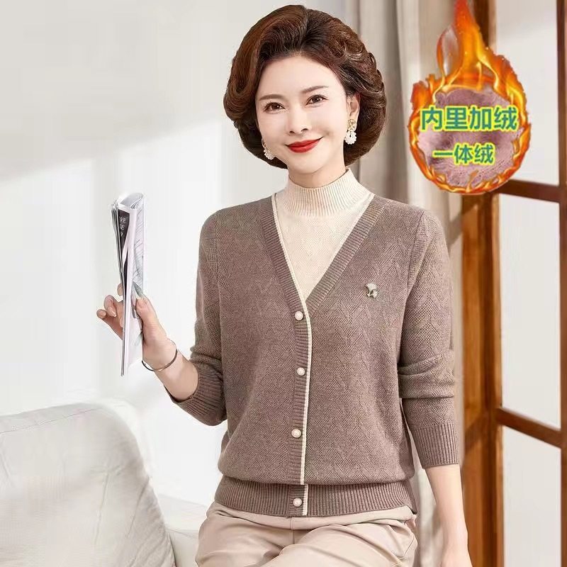 妈妈秋冬装加厚水貂绒假两件羊毛衣打底衫中老年女冬季保暖衣内