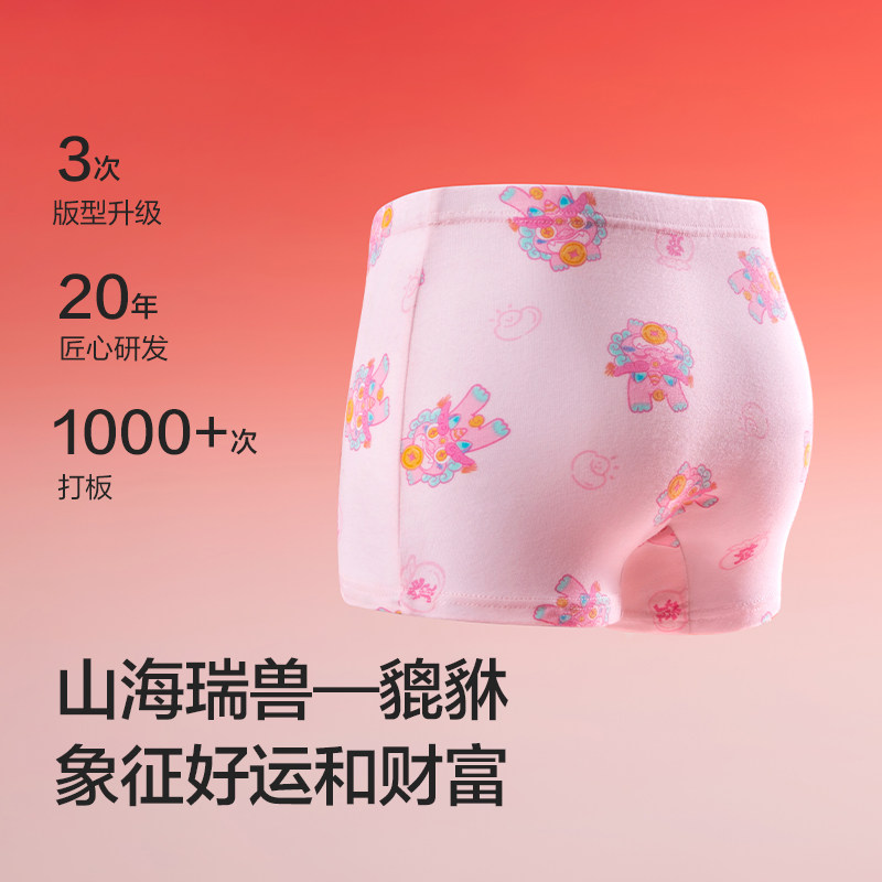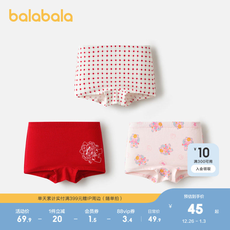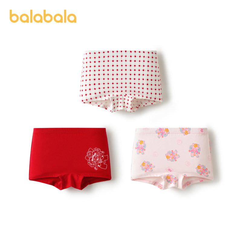 巴拉巴拉女童内裤平角棉2025春夏款红色儿童短裤四角三条装本命年