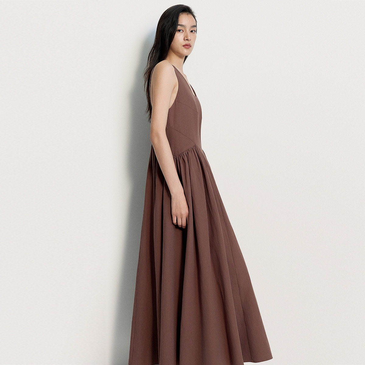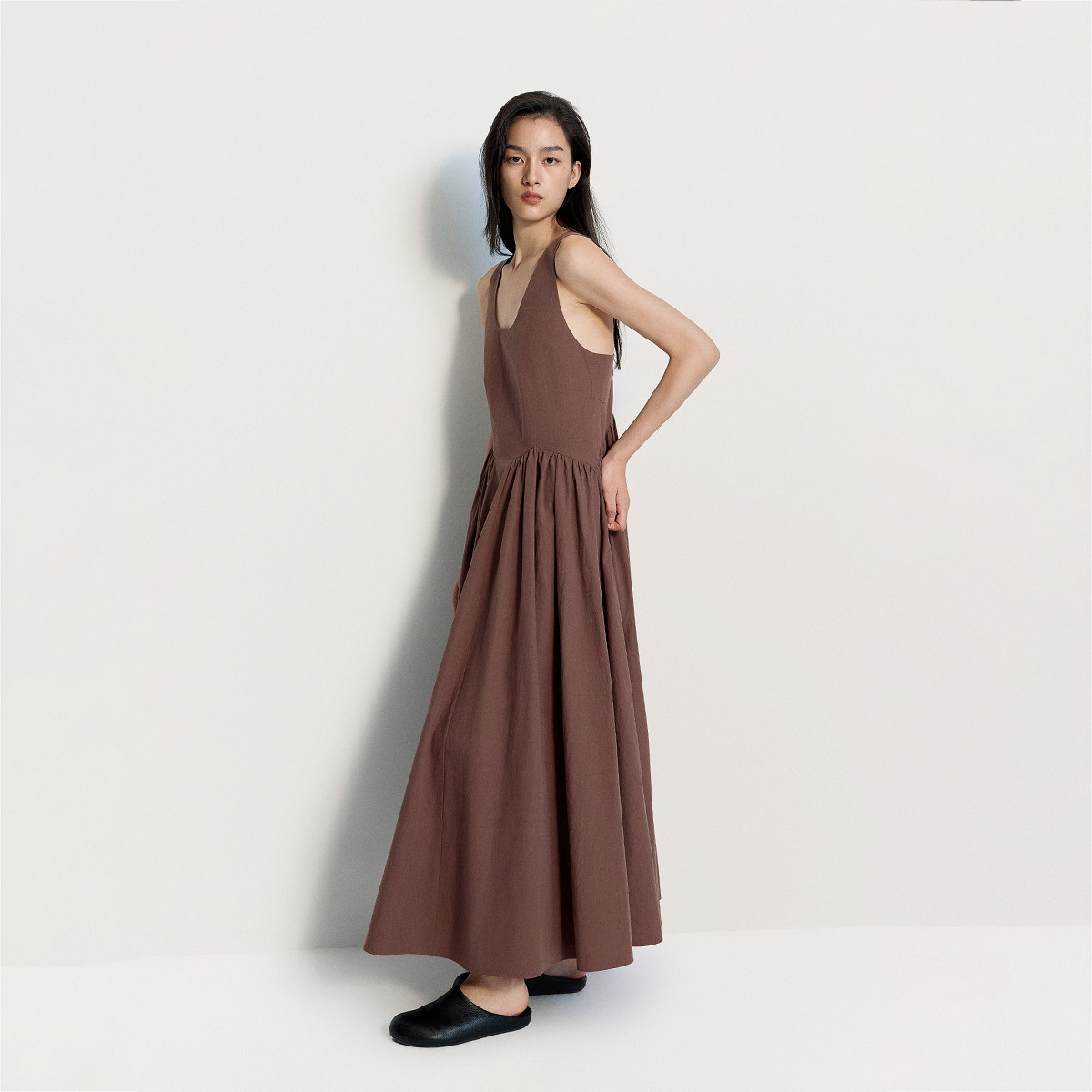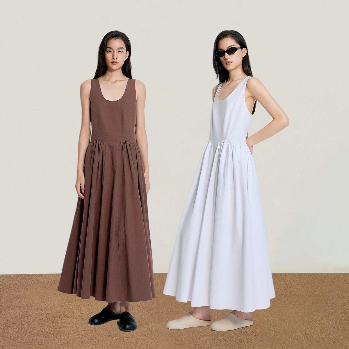 OCHIRLY欧时力 100%棉无袖连衣裙长款背带A字气质25夏季新品