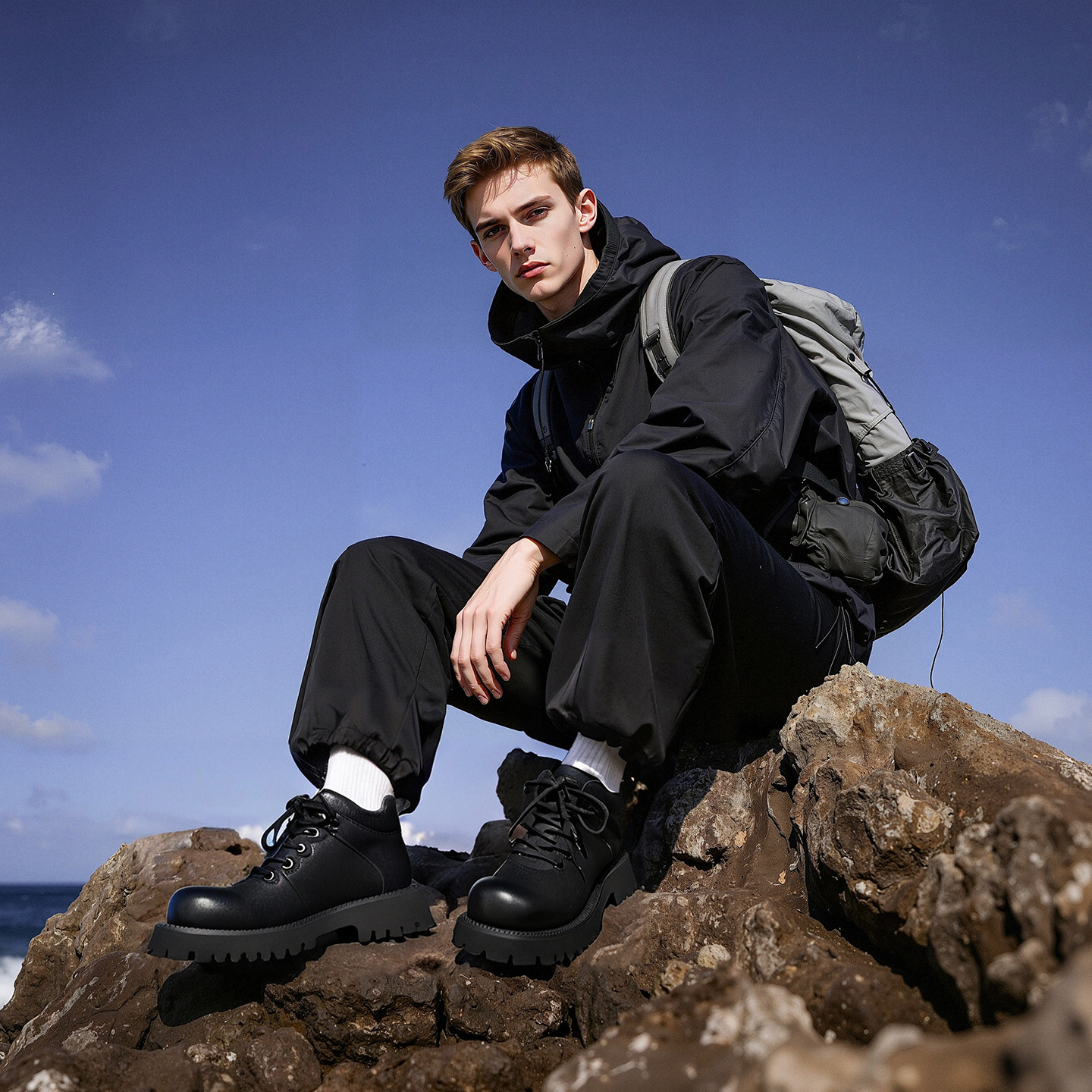 马克华菲马丁靴男款秋冬2025新款厚底增高工装靴男士德比大头皮鞋
