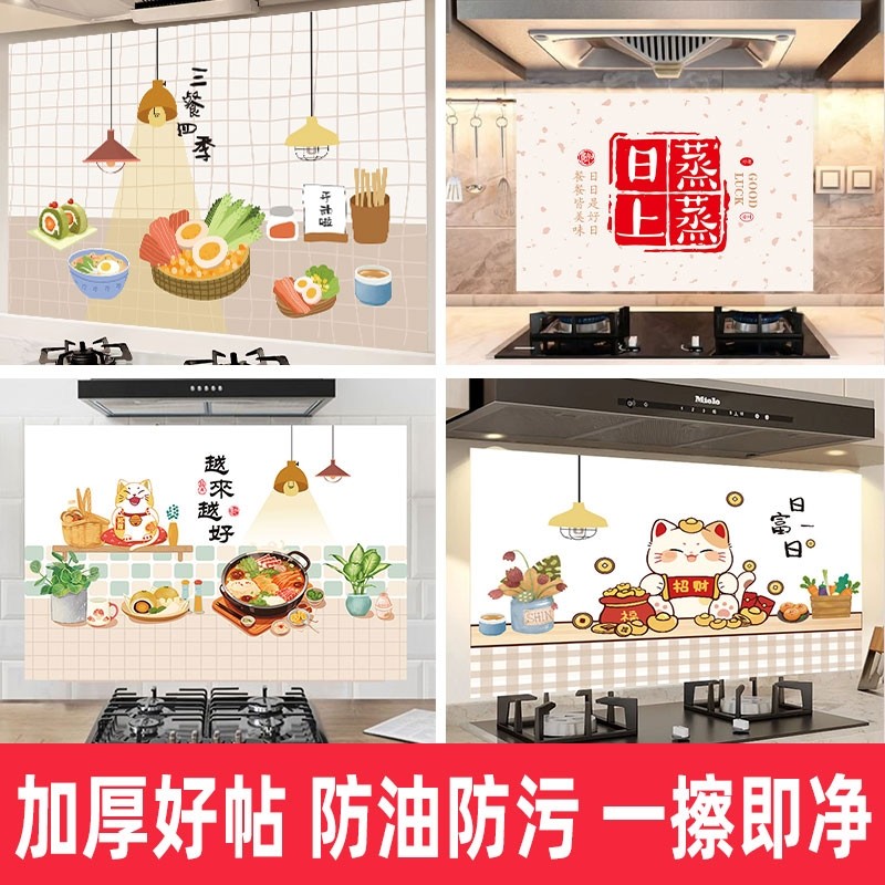 厨房防油贴纸蒸蒸日上灶台防水静电墙贴防火耐高温新居墙面装饰