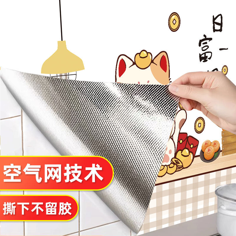 厨房防油贴纸防火耐高温灶台防水墙壁纸加厚自粘橱柜防潮铝箔锡纸
