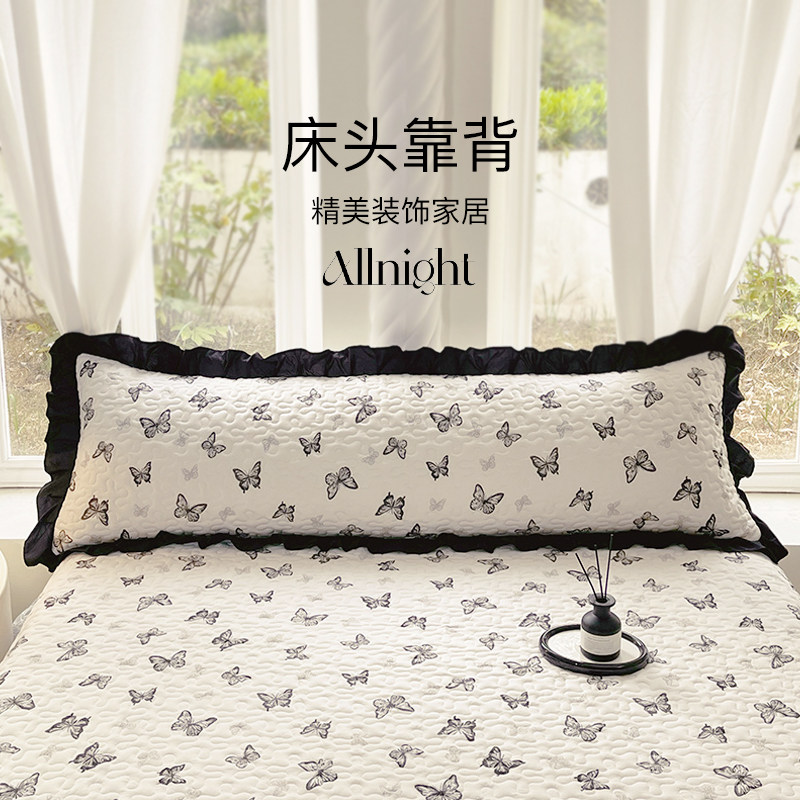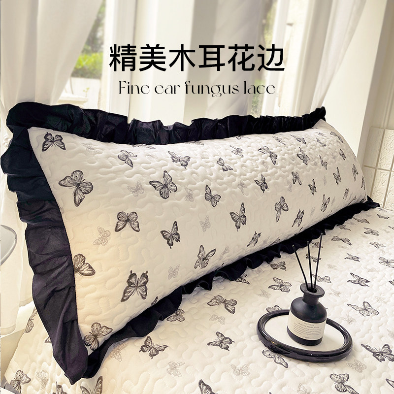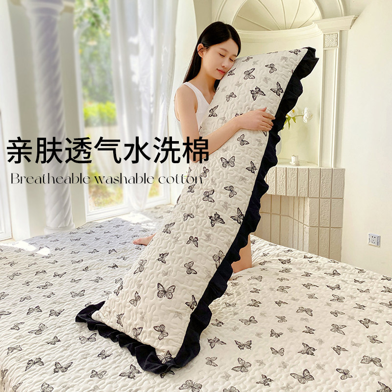 如奕双人长枕套水洗棉枕头套软糯亲肤可水洗夹棉花边情侣款防滑脱