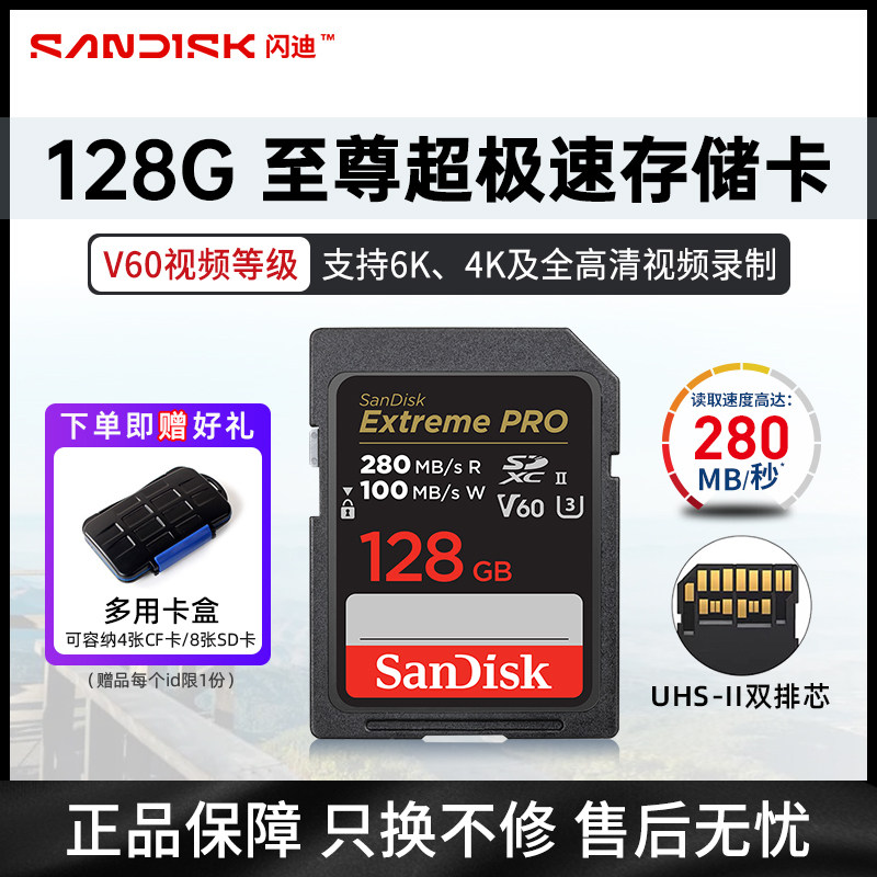 新品闪迪v60高速SD卡280MB读速支持6k视频