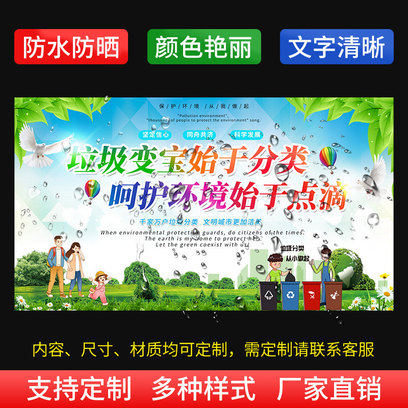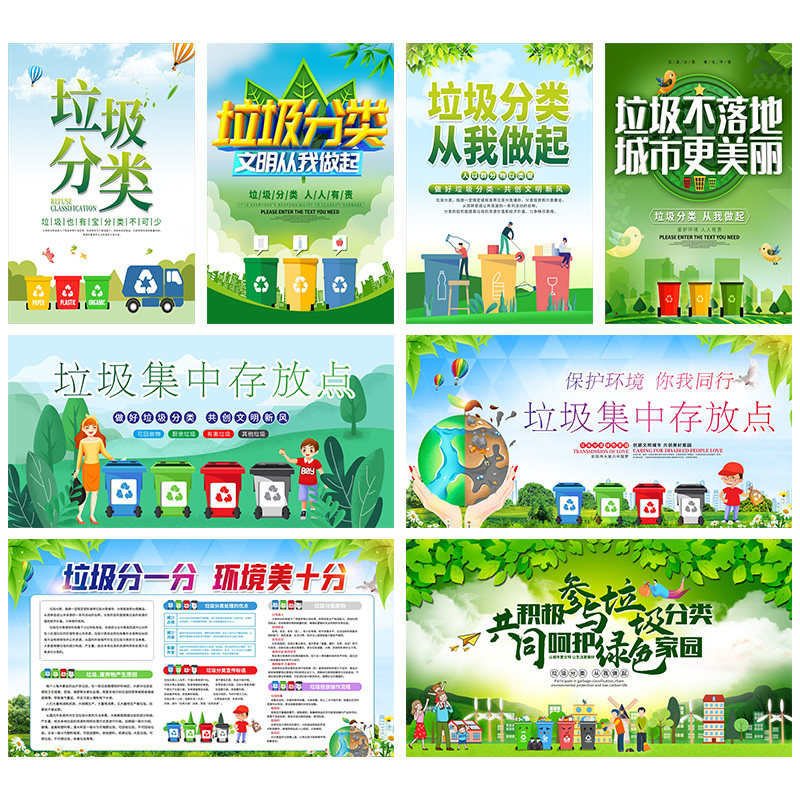 垃圾分类宣传海报挂图环境保护宣传海报生活垃圾分类存放点投放指南标语挂图垃圾分类细则明细标识贴纸定制