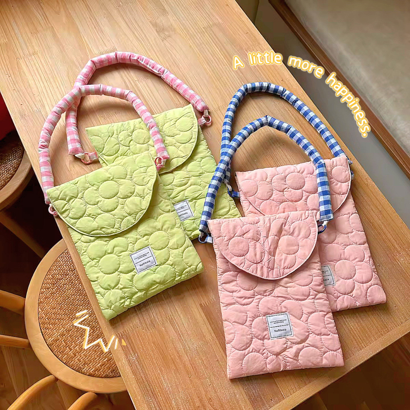 羽绒棉ipad收纳包ins高颜值绗缝可爱手拎钥匙零钱手机尿布妈咪包