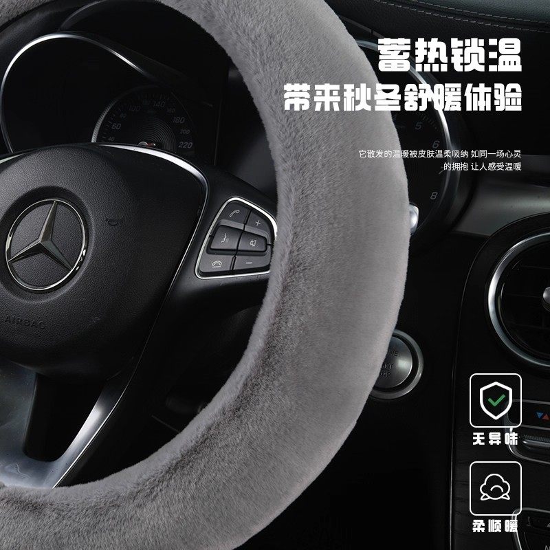 汽车方向盘套冬季毛绒O型D型保暖聚温车把套防滑水貂绒可爱粉色