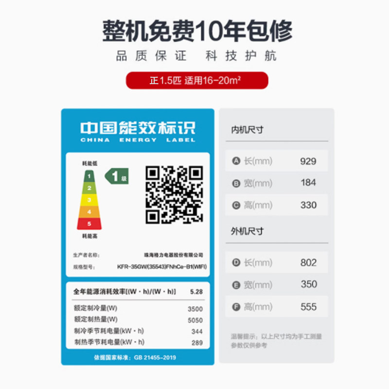 格力空调官方新一级能效正1.5匹变频冷暖卧室除甲醛挂机臻净风