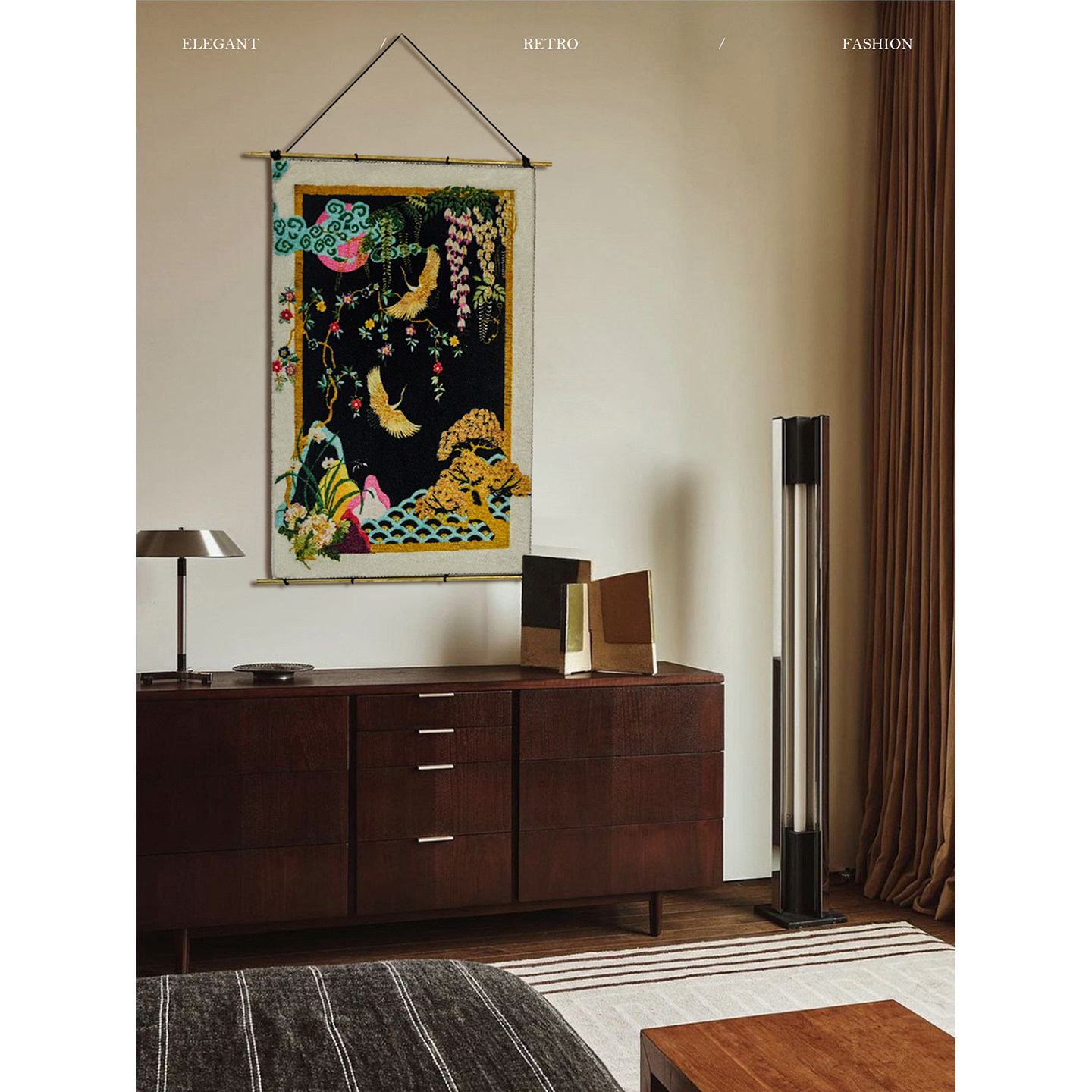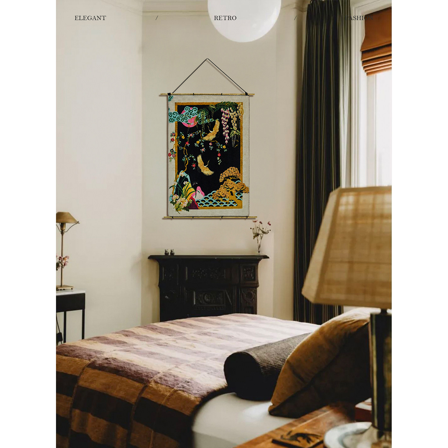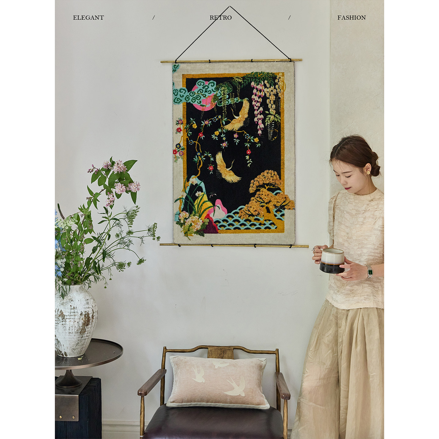 蜡笔派|中式古典|松鹤呈祥挂画铜杆挂毯画客厅装饰画餐厅背景挂画