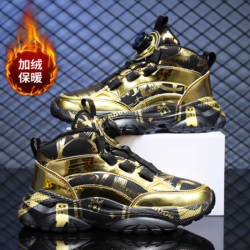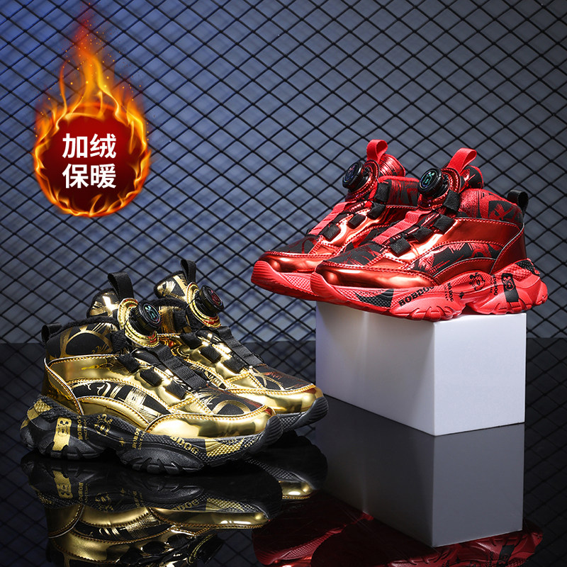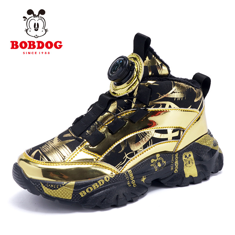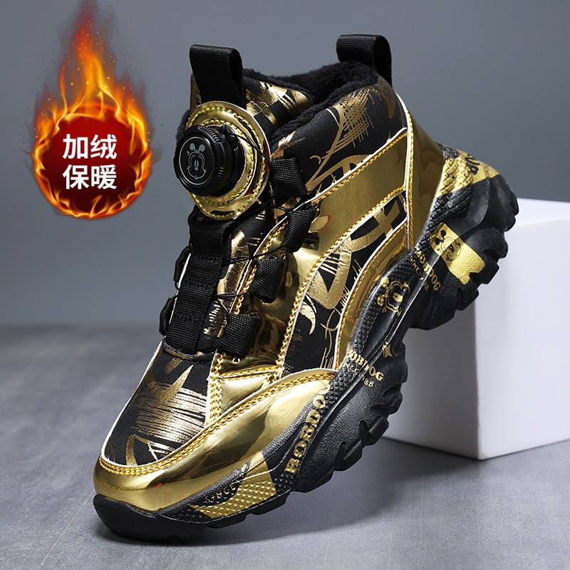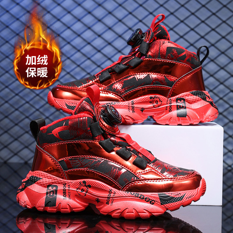 巴布豆加绒男童运动鞋2025秋冬季新款加厚棉鞋中大童男孩跑步鞋子
