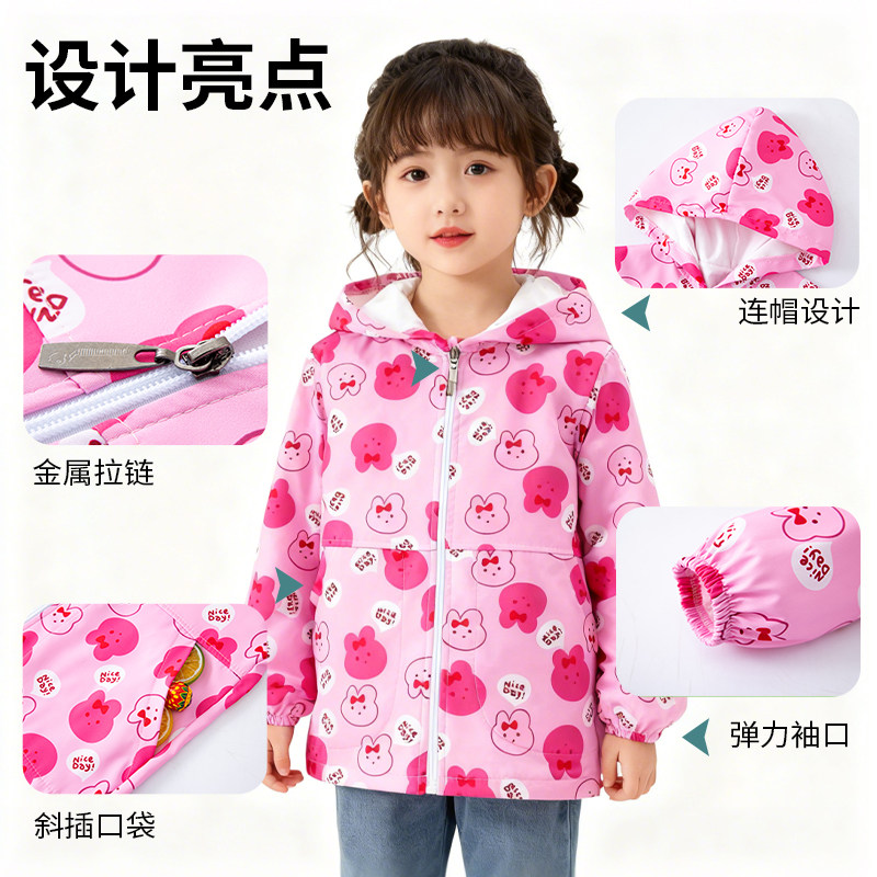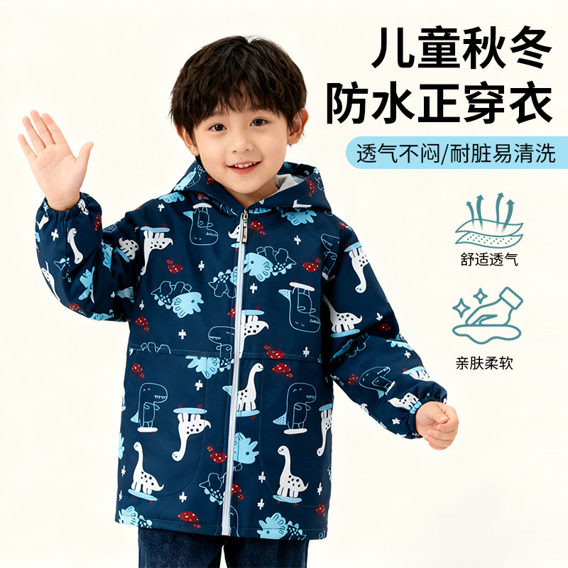 儿童防水罩衣拉链正穿衣易洗画画衣宝宝秋冬棉袄外套吃饭红色防污