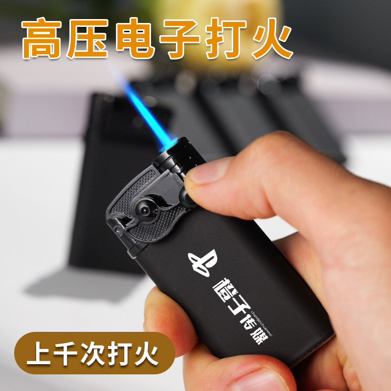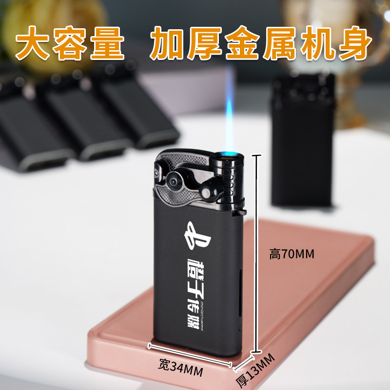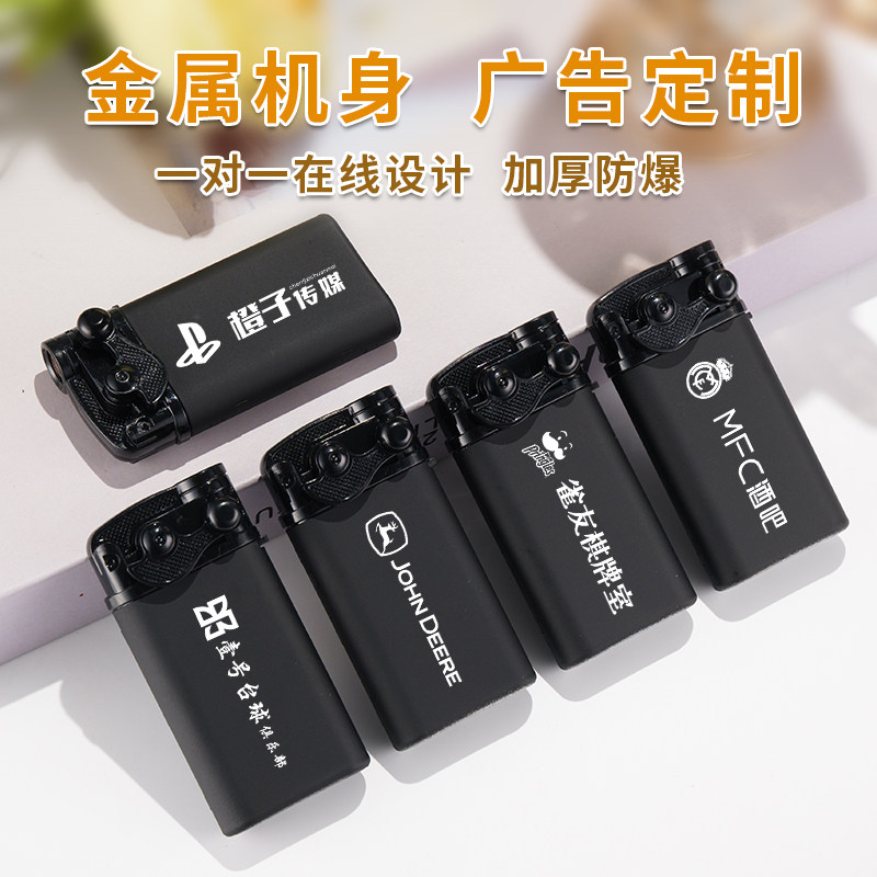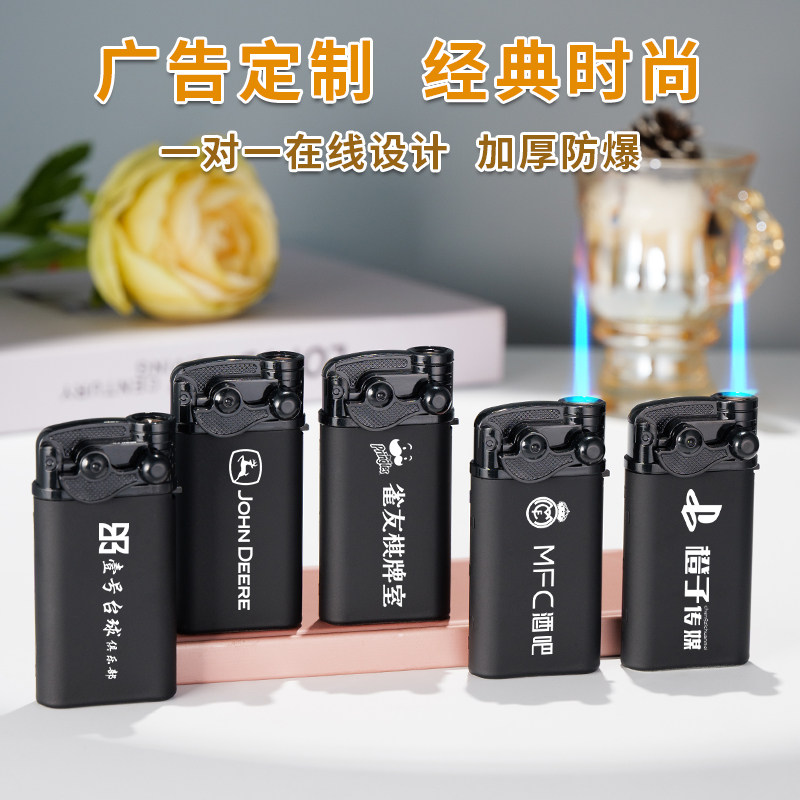 新款摇臂式高档防风直冲金属打火机可充气印字家用火机批发磨砂