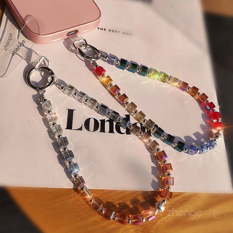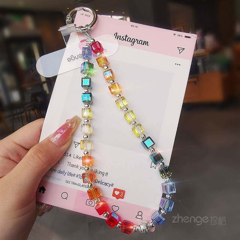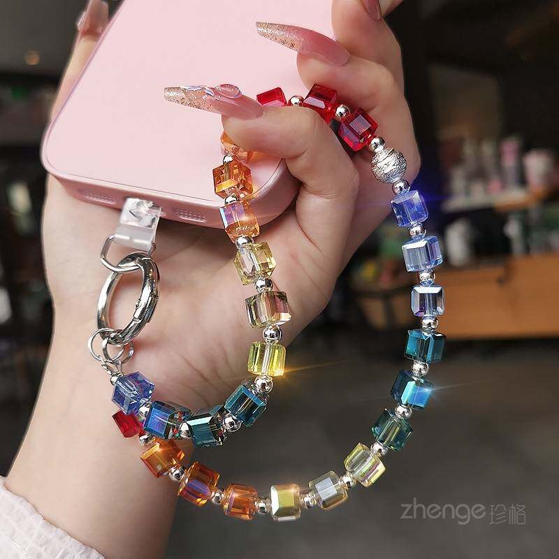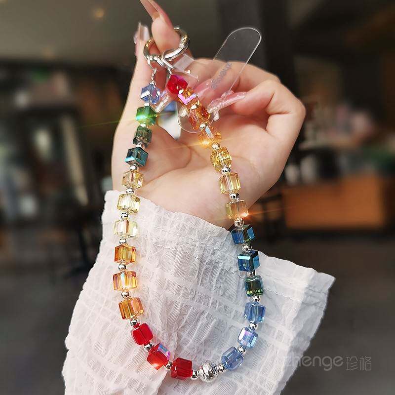 高级感彩虹水晶手机挂绳女甜美多巴胺手腕挂饰短款小清新手机保护
