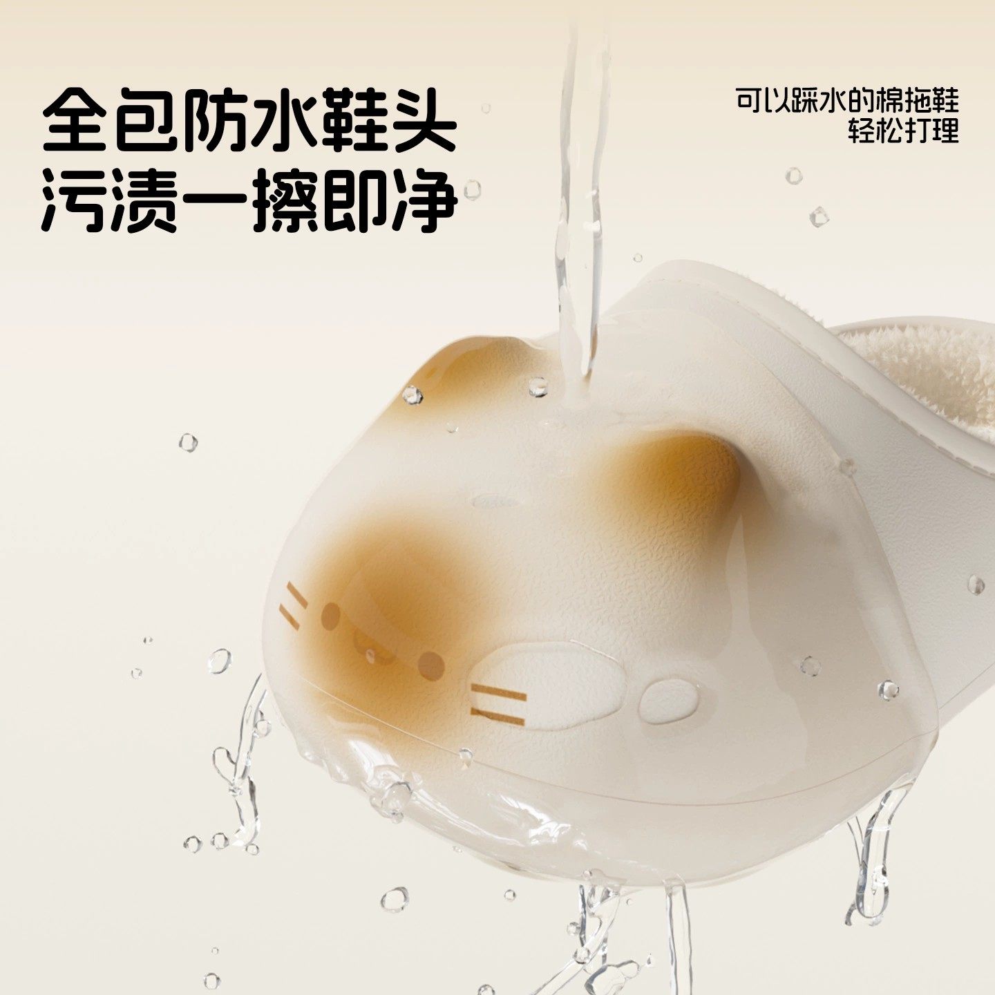 可爱猫爪印棉拖鞋女冬居家保暖情侣防水微小猫棉拖男加绒全包防滑