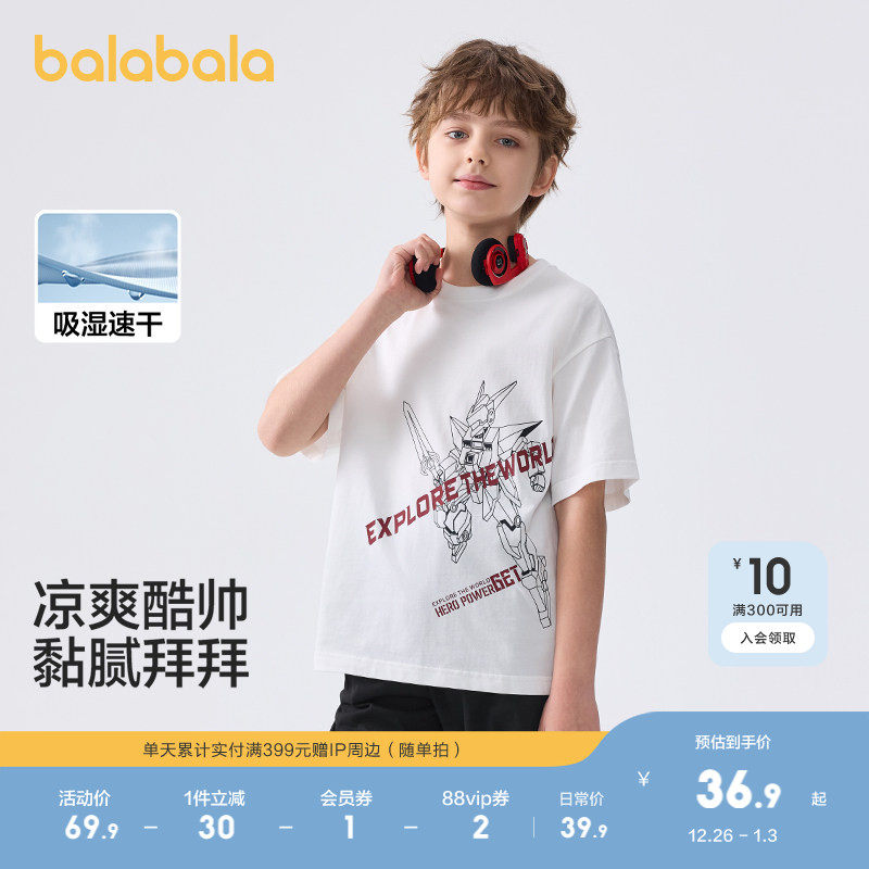 巴拉巴拉儿童短袖t恤男童打底衫女夏装纯棉印花亲子休闲上衣童装