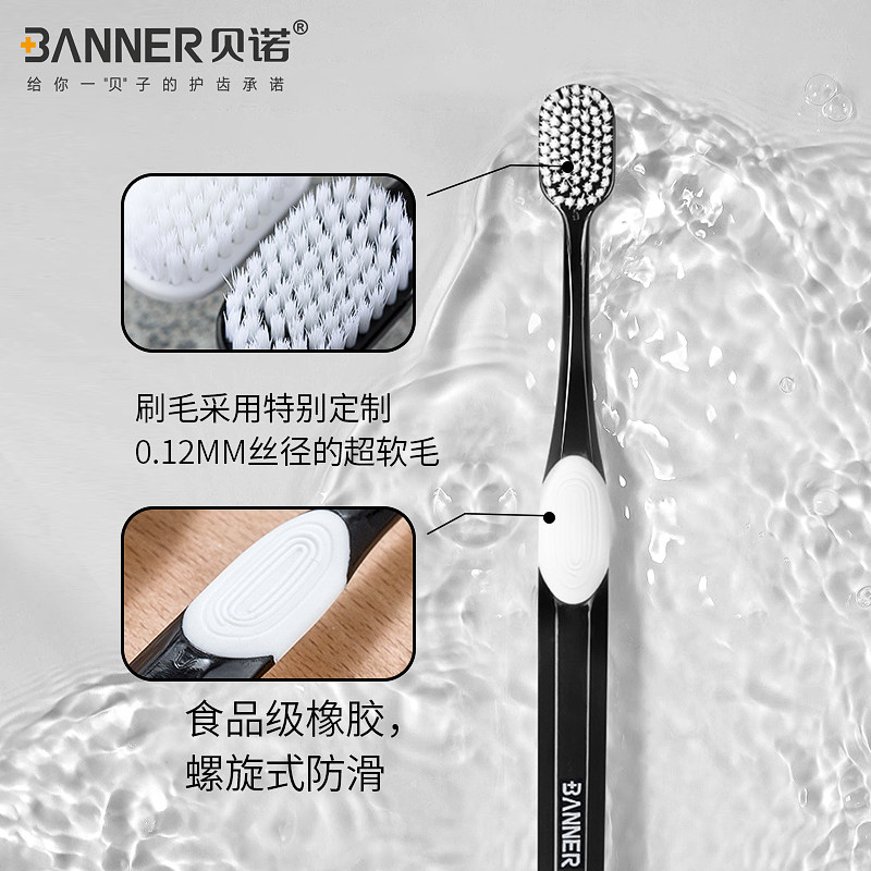 贝诺超柔细丝软毛牙刷66孔宽头深层洁净护龈成人情侣家庭舌苔清洁