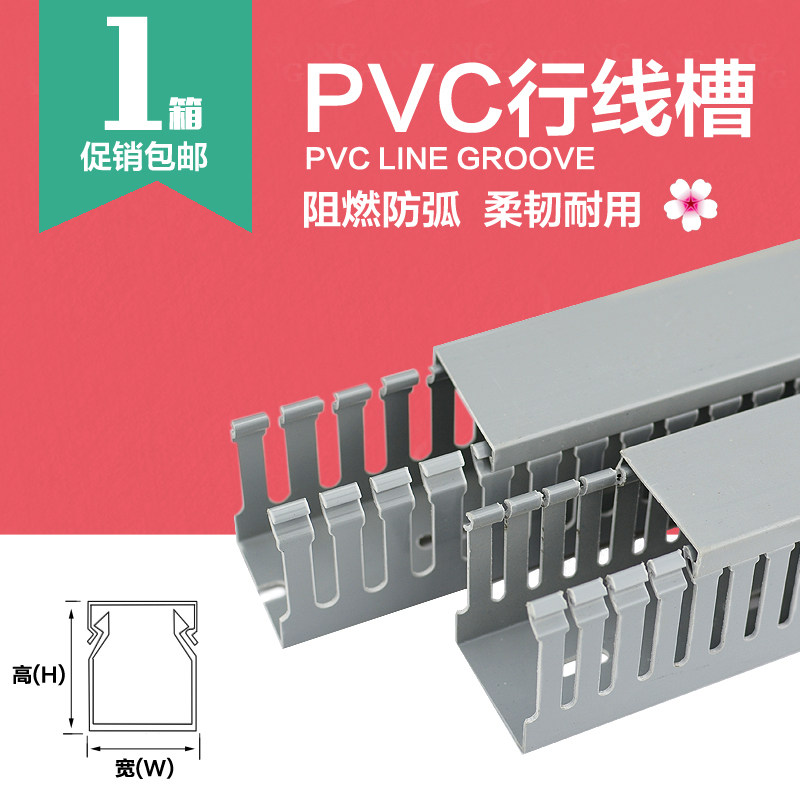 灰色蓝色PVC行线槽配电箱柜走线槽U型阻燃布线槽明装塑料开口线槽