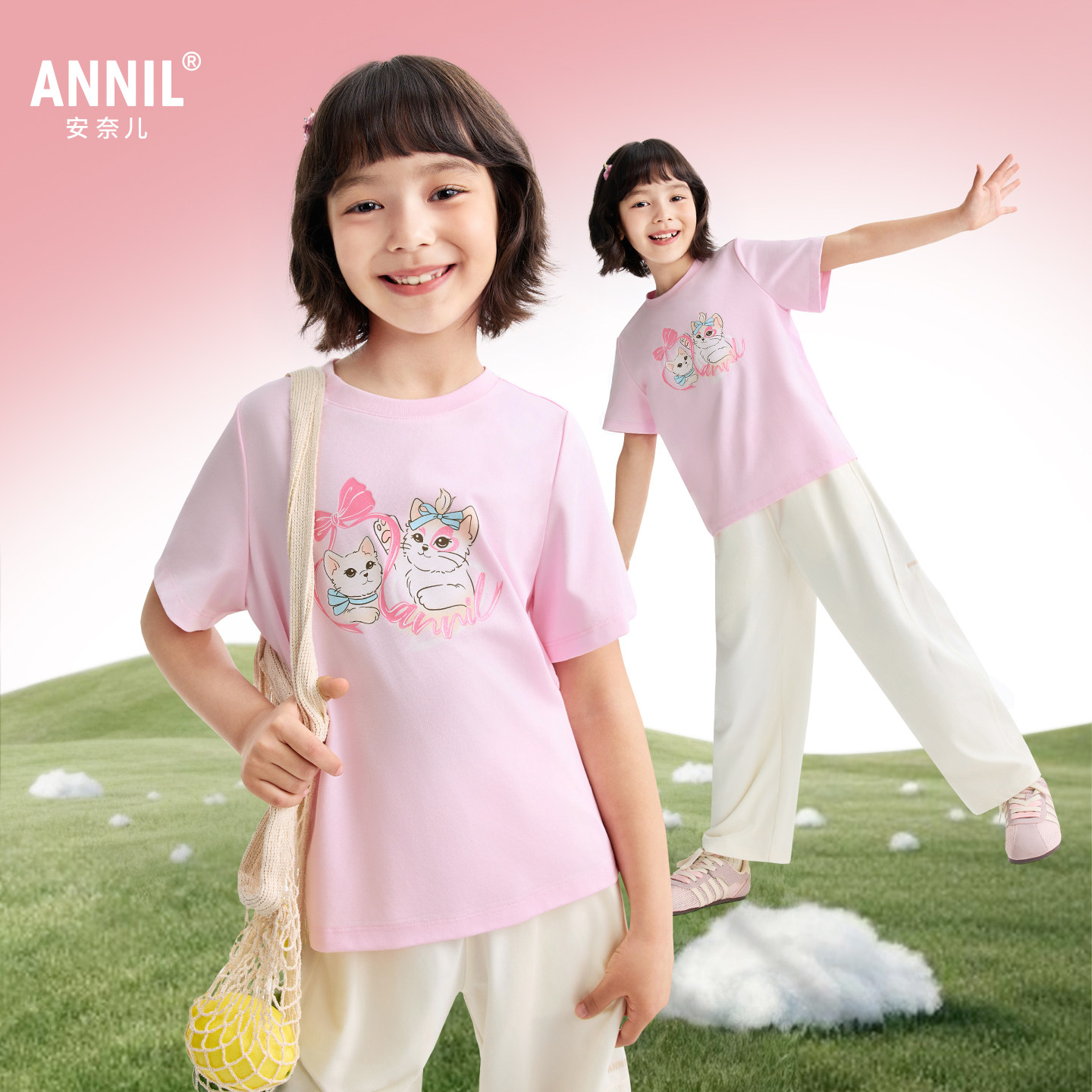 【全棉速干T】安奈儿童装女童圆领短袖T恤2026夏新款运动休闲透气