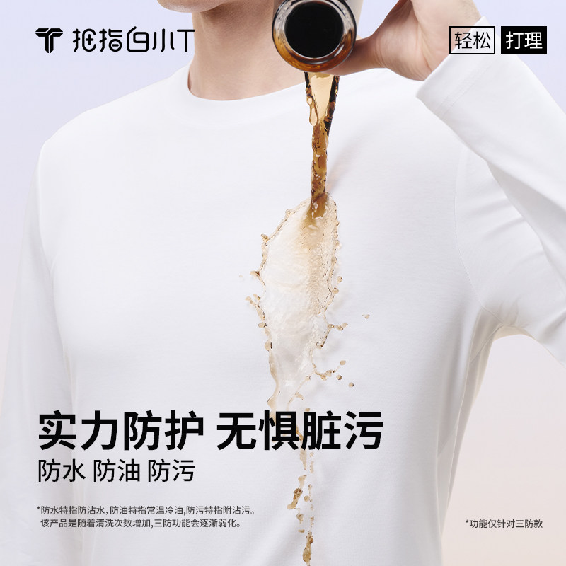 拇指白小T二代长袖圆领纯色T恤25秋季纯棉舒适易打理男女款打底衫