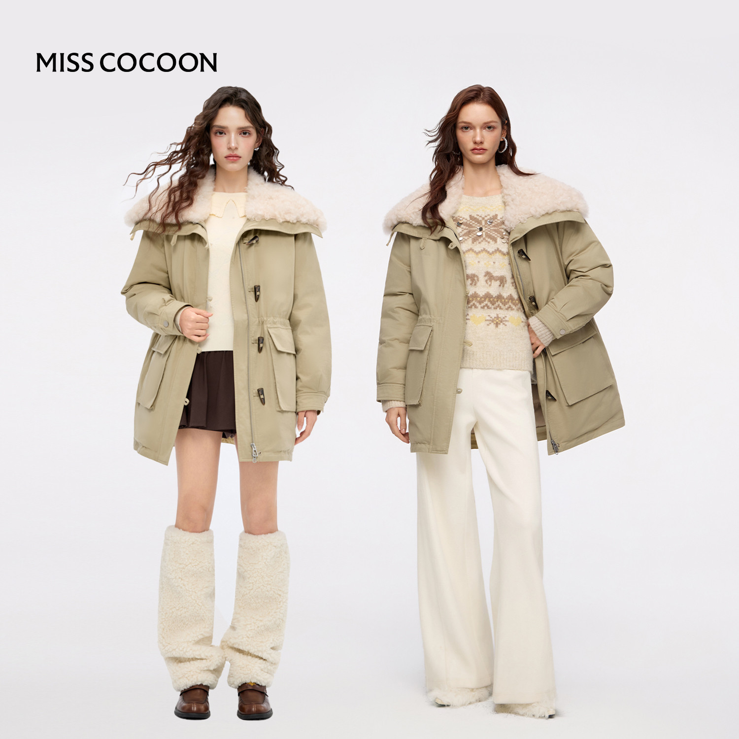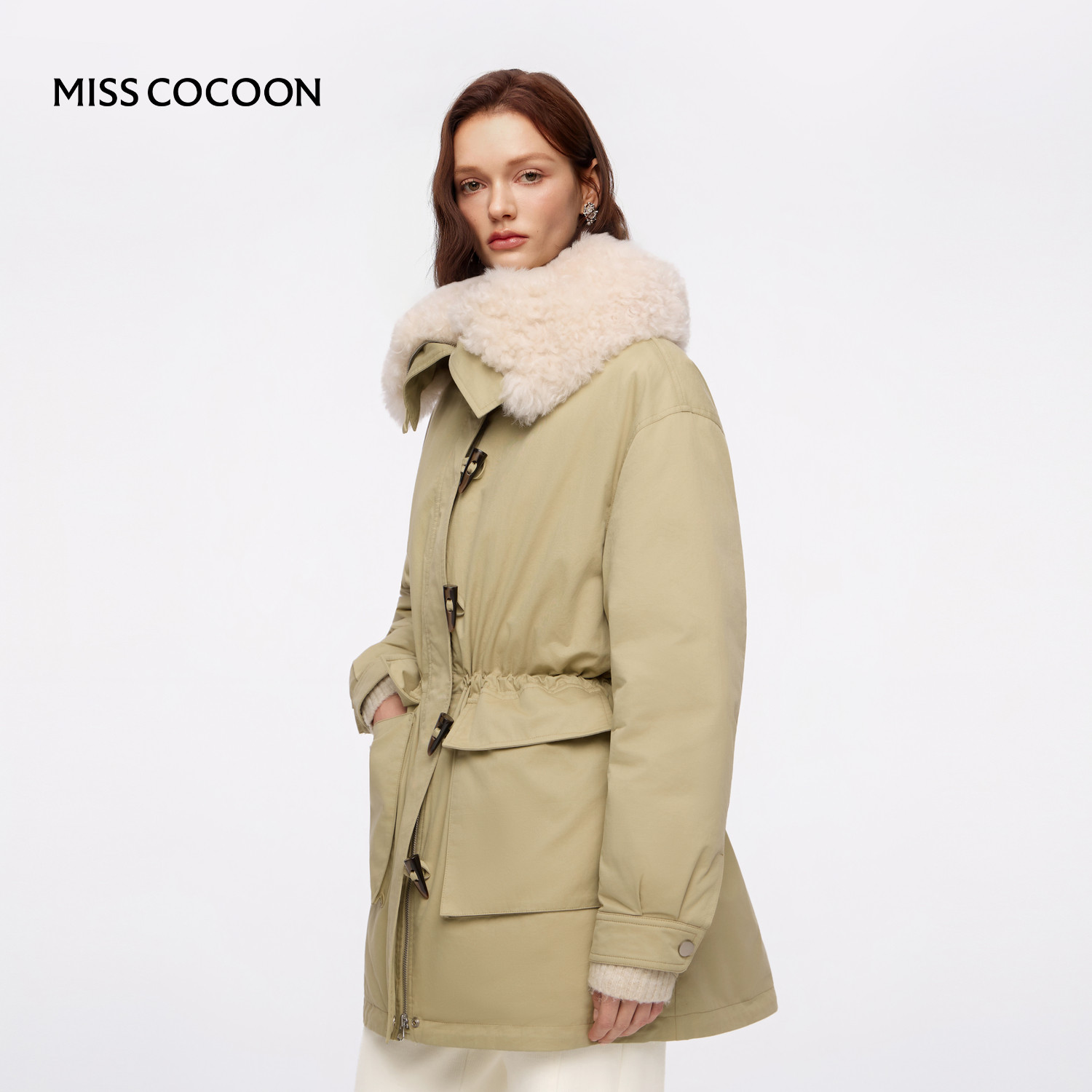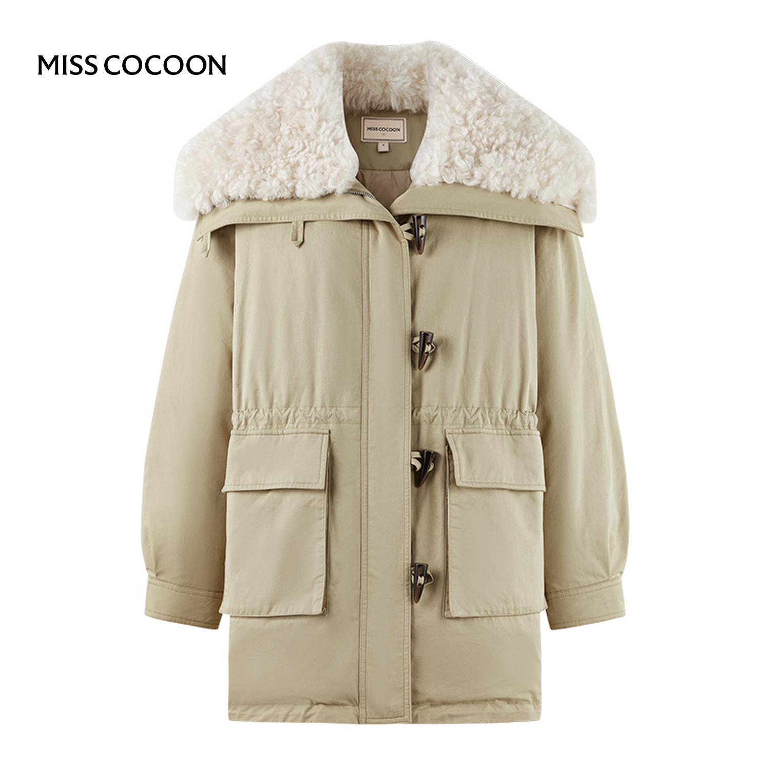 MISSCOCOON可可尼羊毛领派克服女2025秋冬新款中长款鸭绒羽绒服