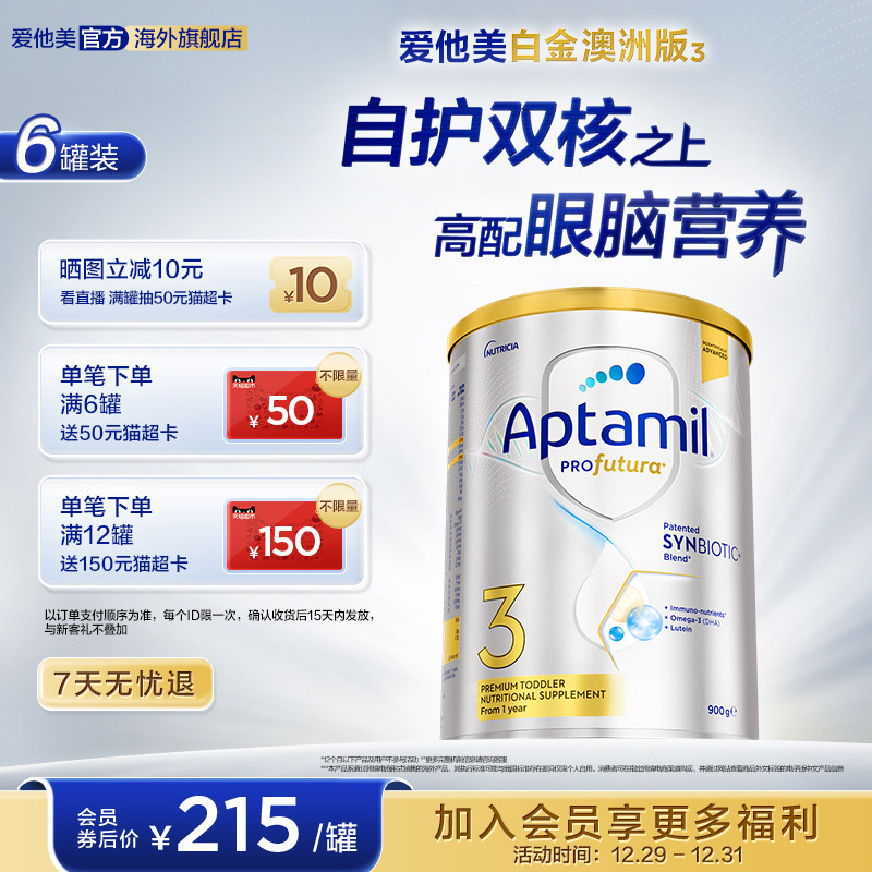 【官方正品】澳洲爱他美3段白金版铂金装婴儿爱他奶粉三段旗舰店
