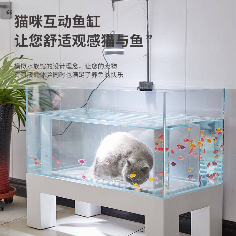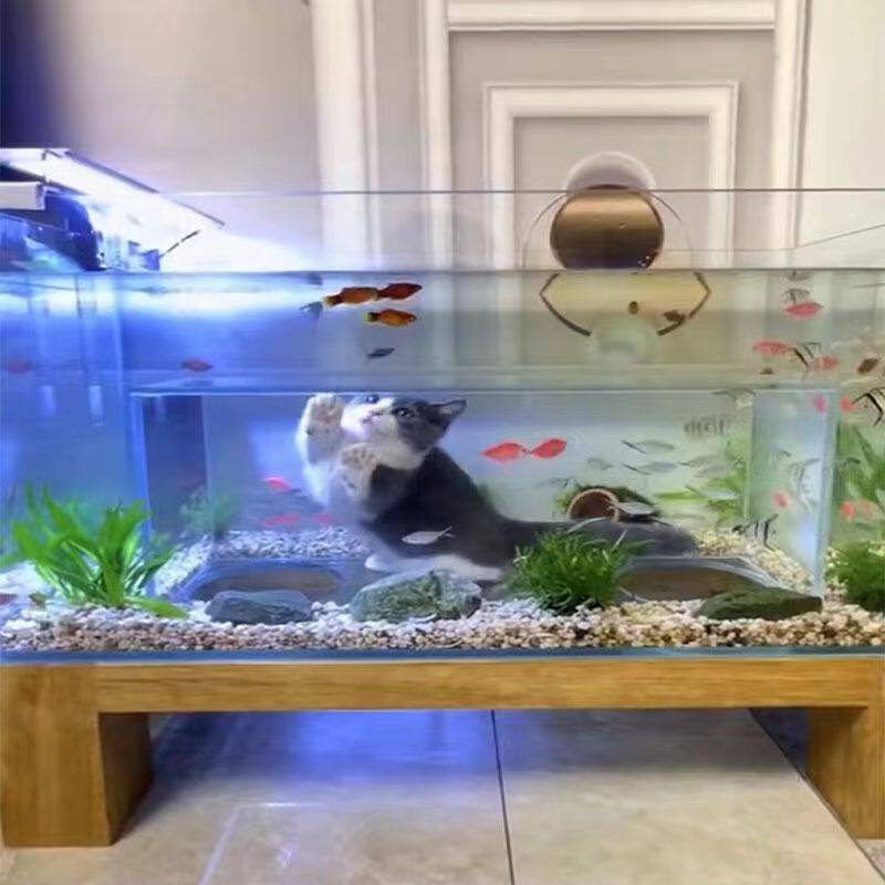 猫窝鱼缸隧道可钻观景超白玻璃一体猫缸沉浸式海景猫窝缸互动观赏