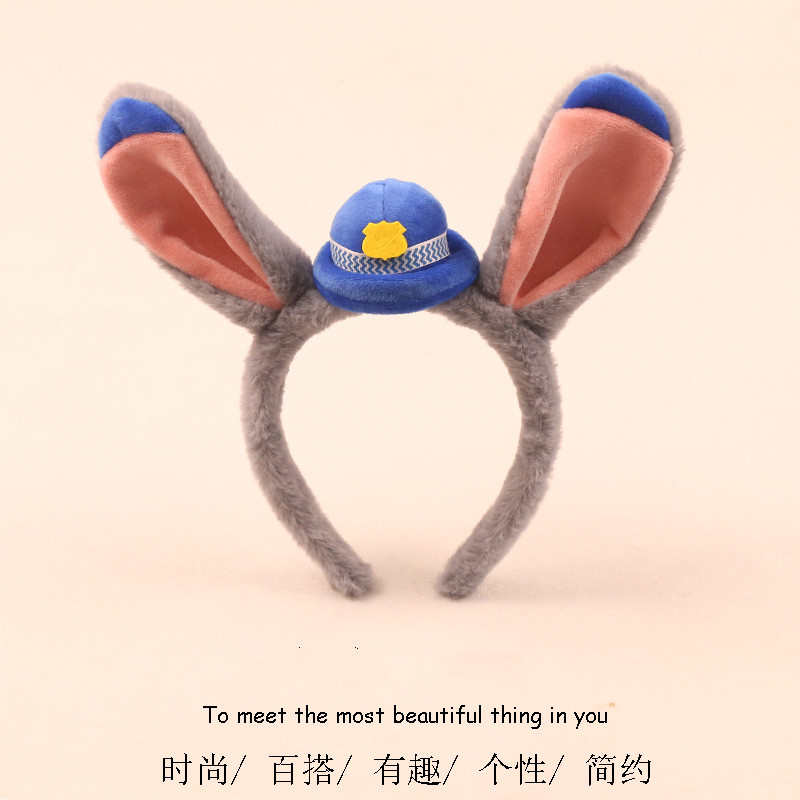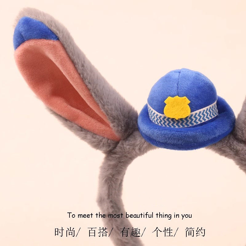 疯狂动物城头饰可爱朱迪发箍警官兔耳朵超萌卡通发卡乐园拍照表演