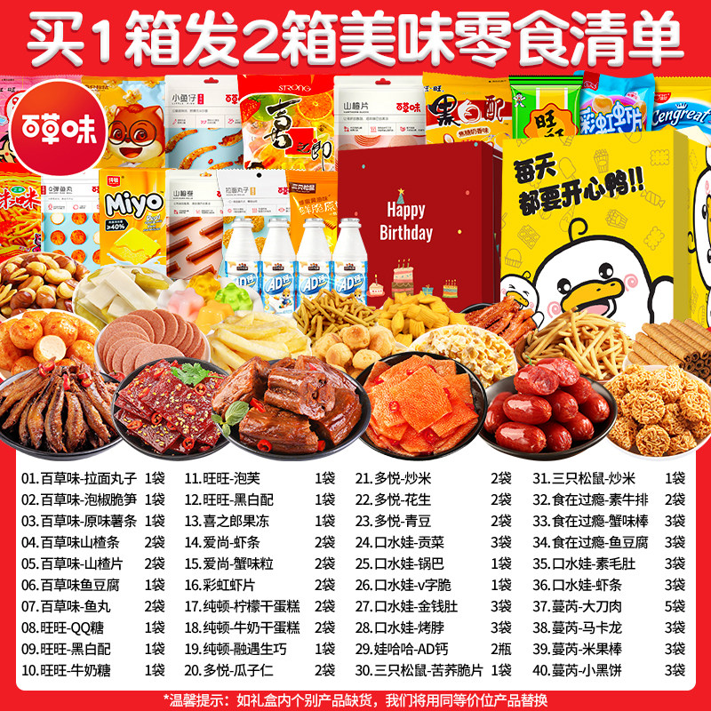 三只松鼠巨型零食大礼包30包送礼品儿童坚果礼盒小吃圣诞生日礼物