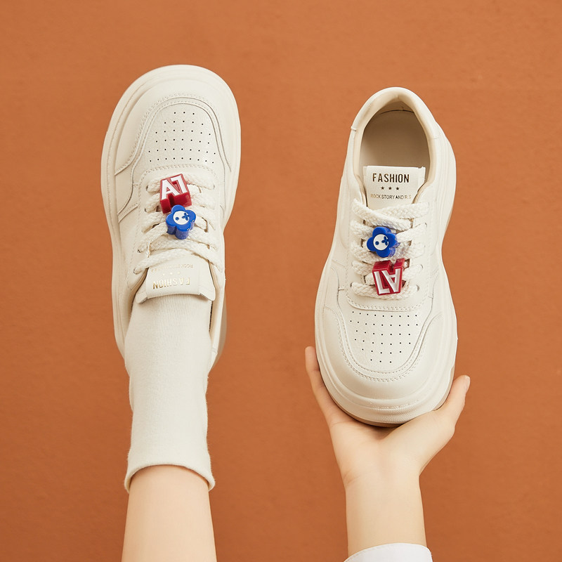 米白色原创小众厚底面包鞋女百搭运动休闲板鞋学生小白鞋2025新款