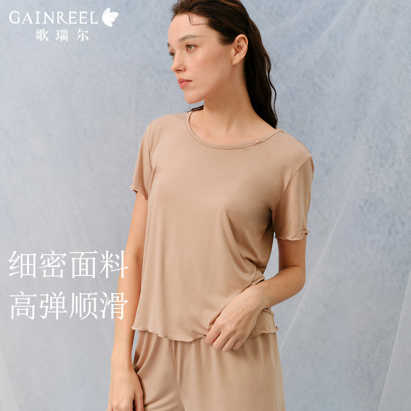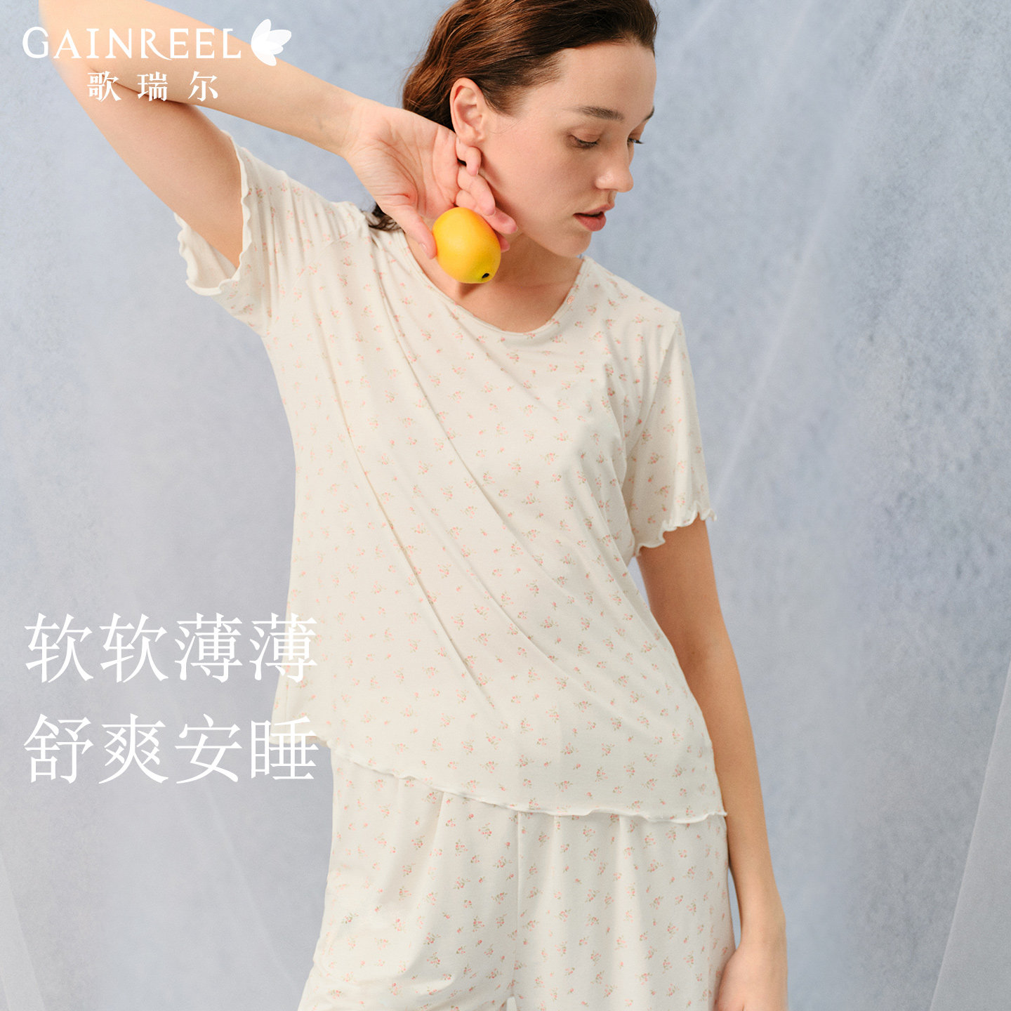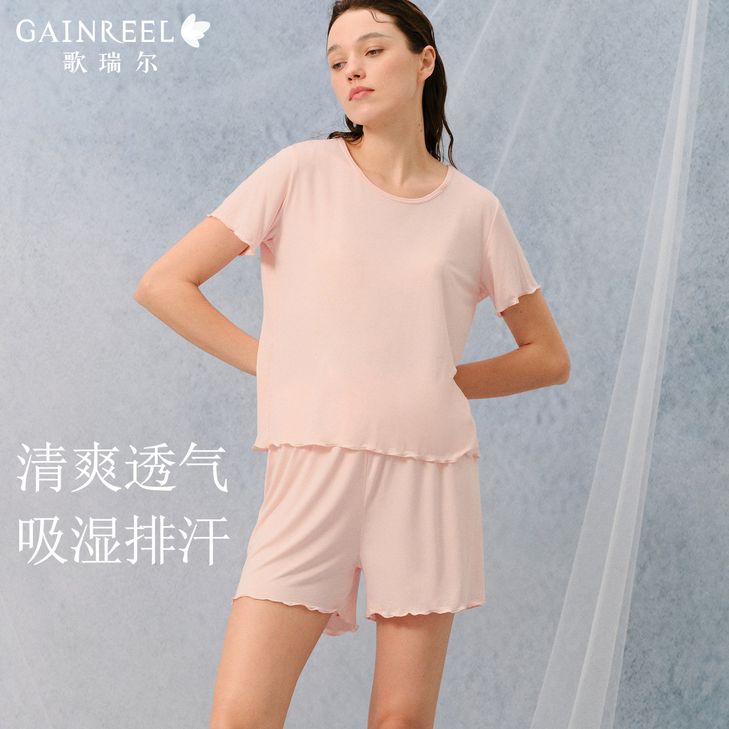 冰丝感莫代尔歌瑞尔短袖套装睡衣女裸感透气舒适可外穿家居服套装