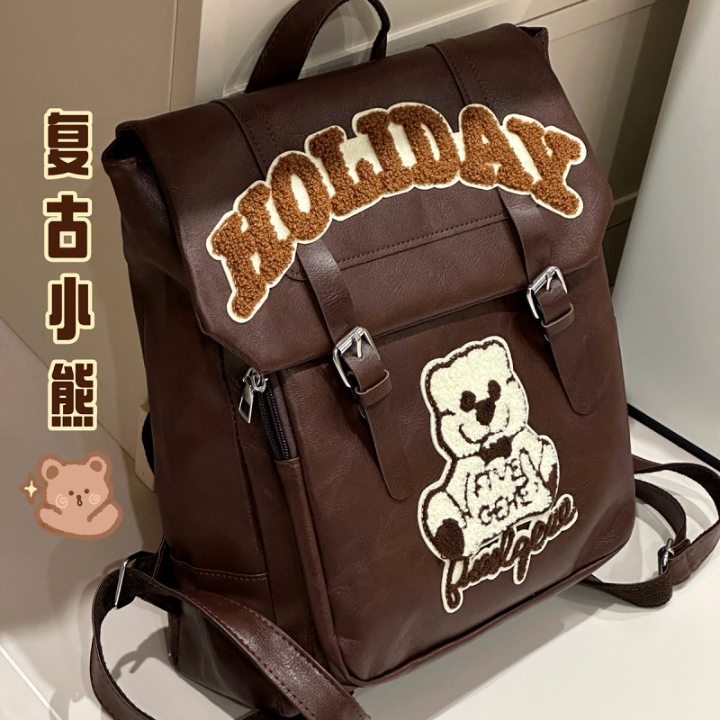 茶话会美式复古PU皮书包女 可爱Y2K辣妹休闲旅游背包大学生双肩包