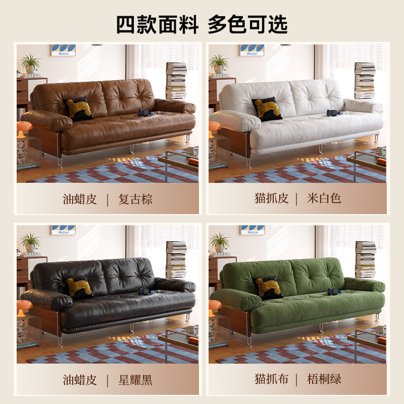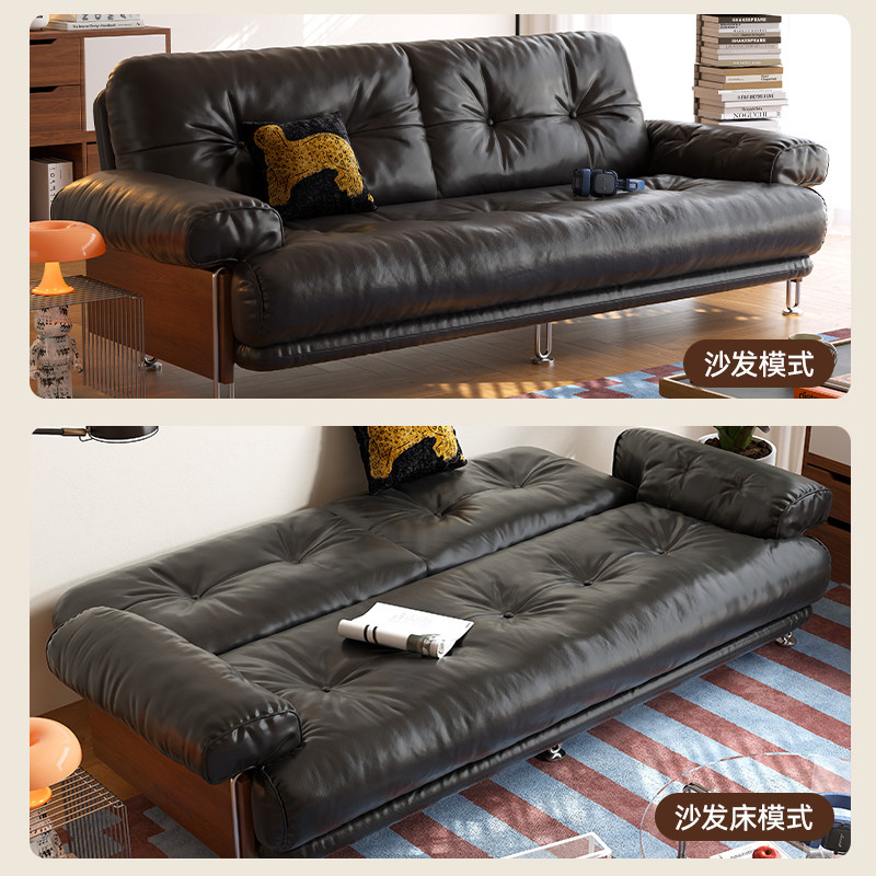 木宫匠家具奥斯卡沙发床中古风实木小户型沙发折叠两用2025新款