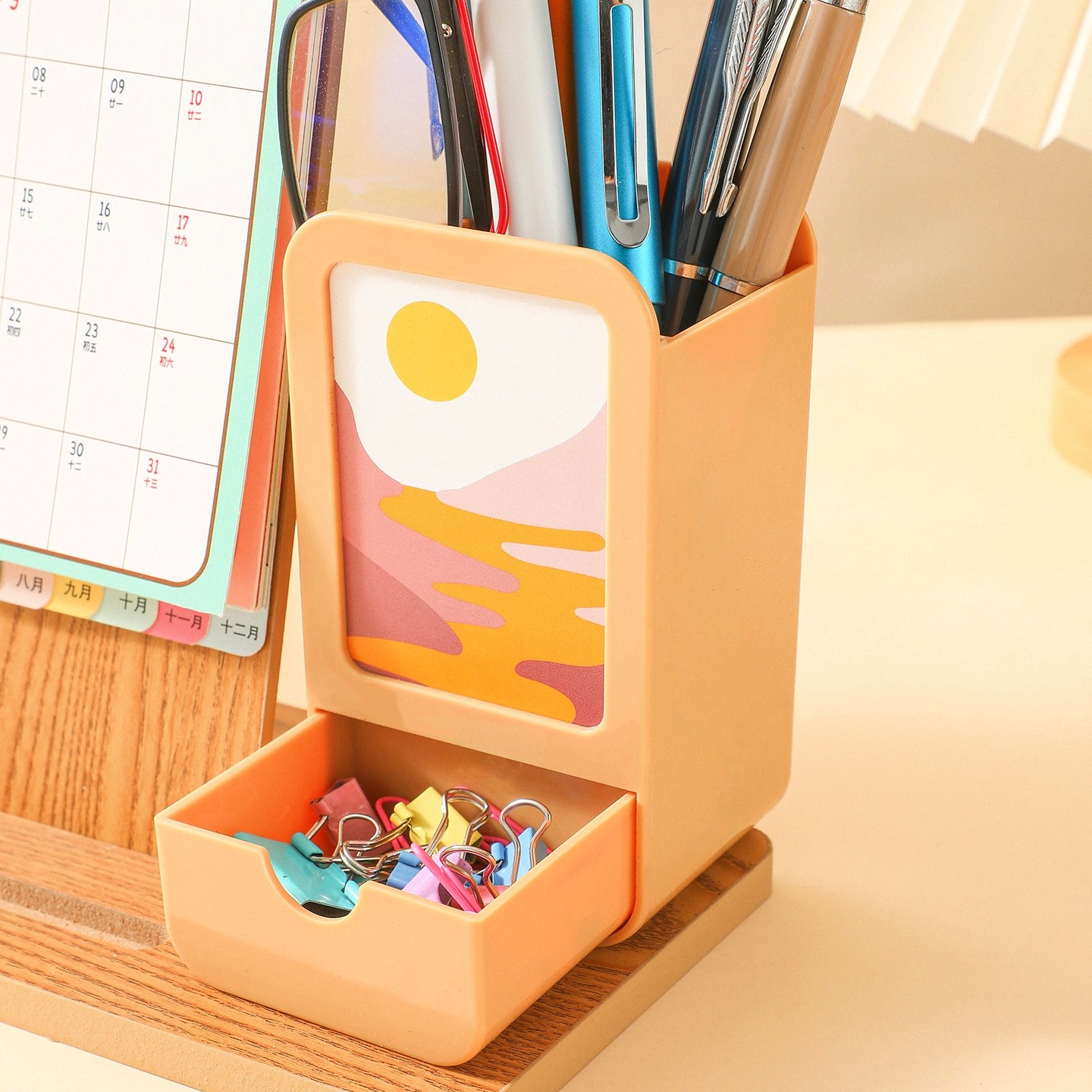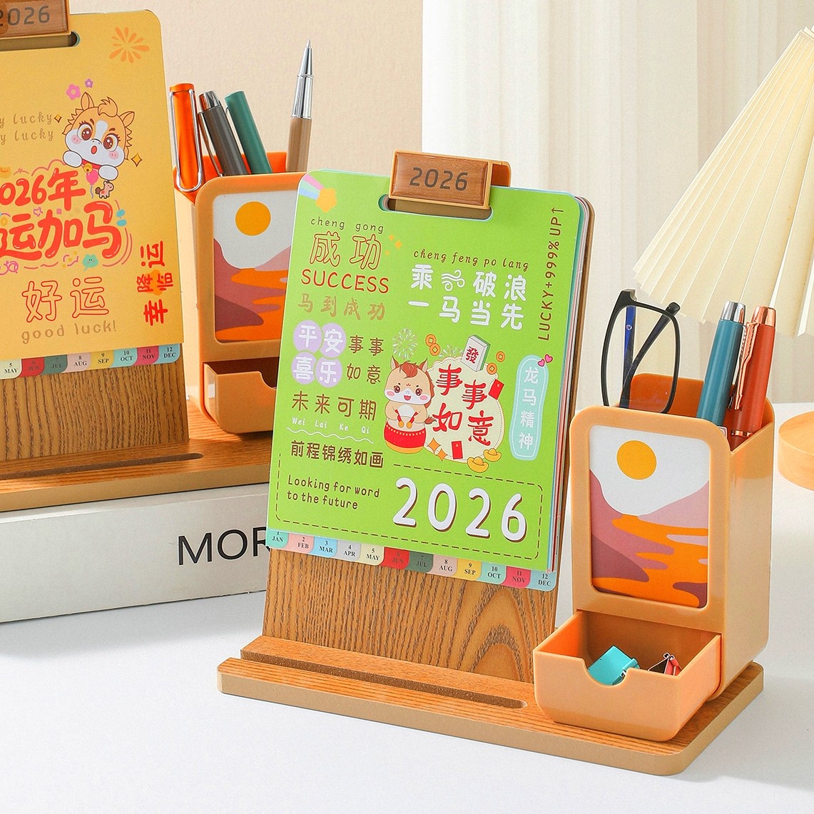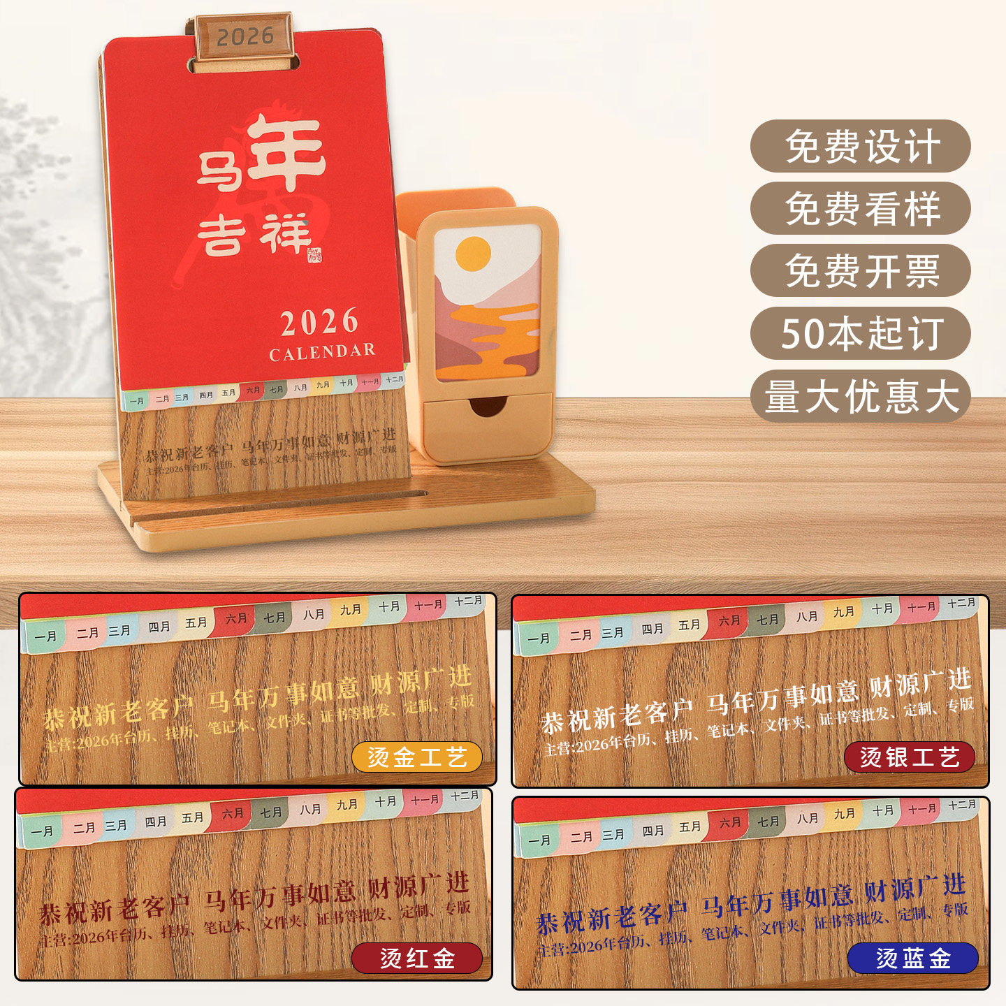 台历2026年新款创意商务多功能笔筒可收纳木质台历办公桌面摆件公司企业广告logo定制记事新款月历礼盒装日历