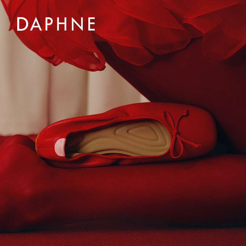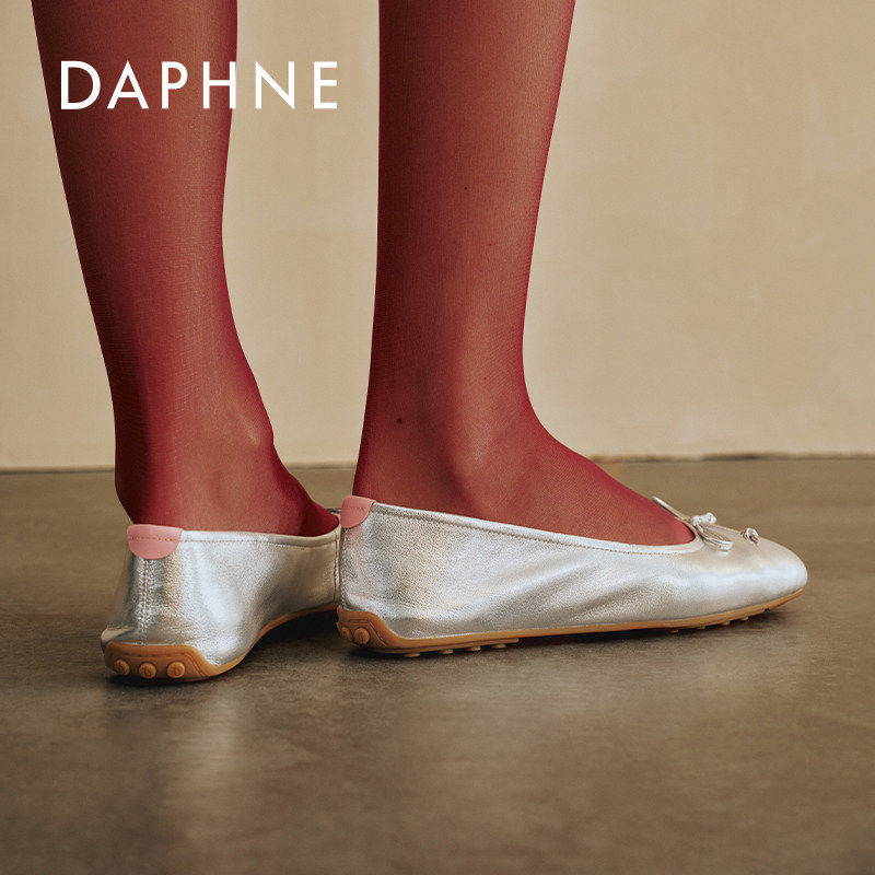 宋茜同款达芙妮云软真皮单鞋女2026新款春季银色平底豆豆鞋芭蕾鞋