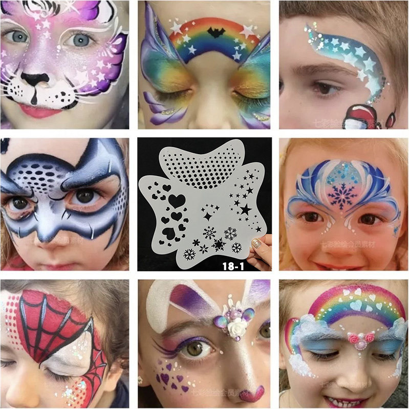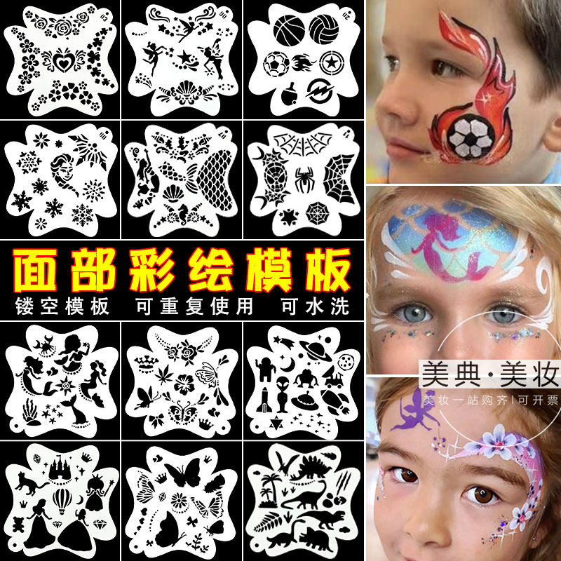 儿童面部彩绘模板人体脸部练习板镂空纹身图案DIY喷绘画涂鸦模具