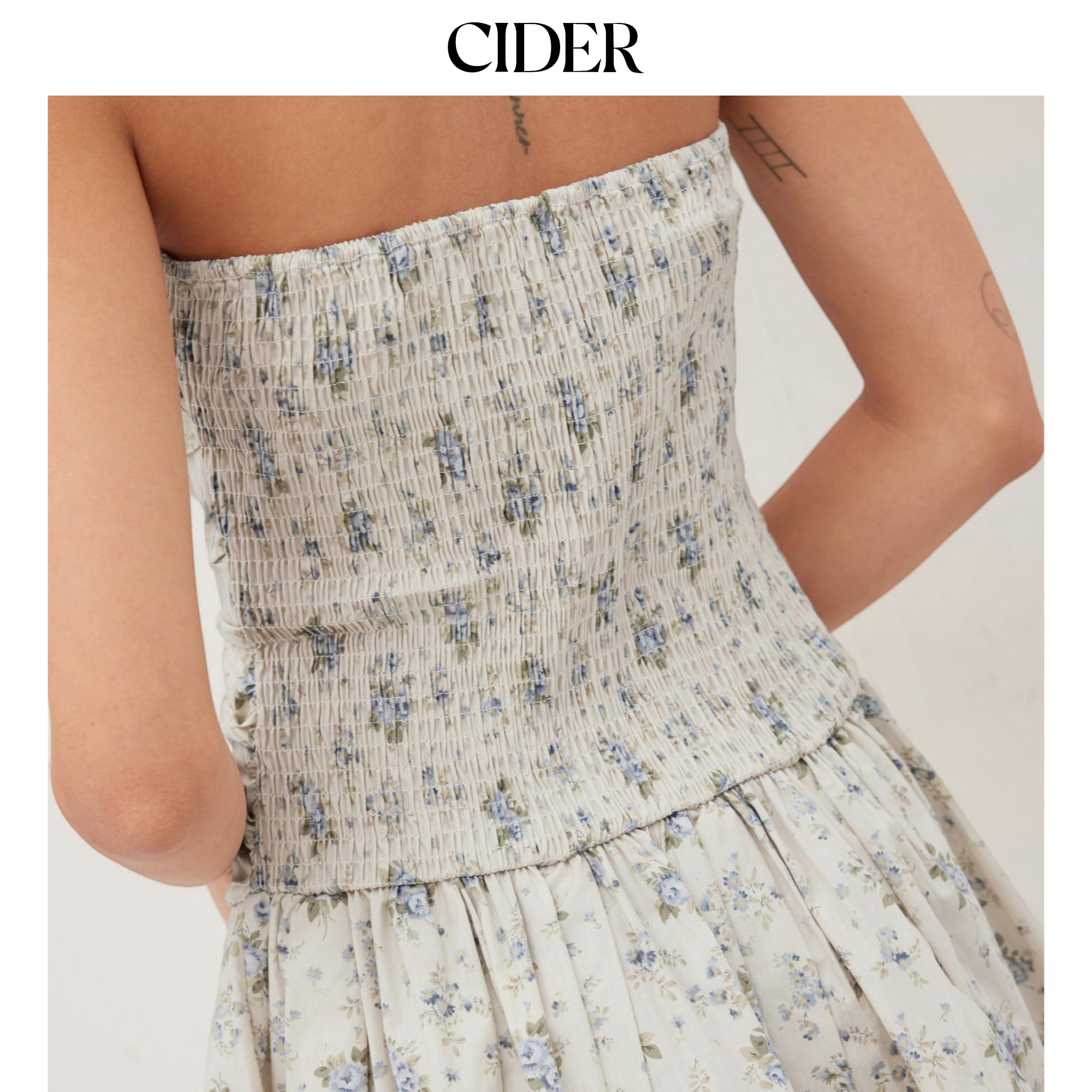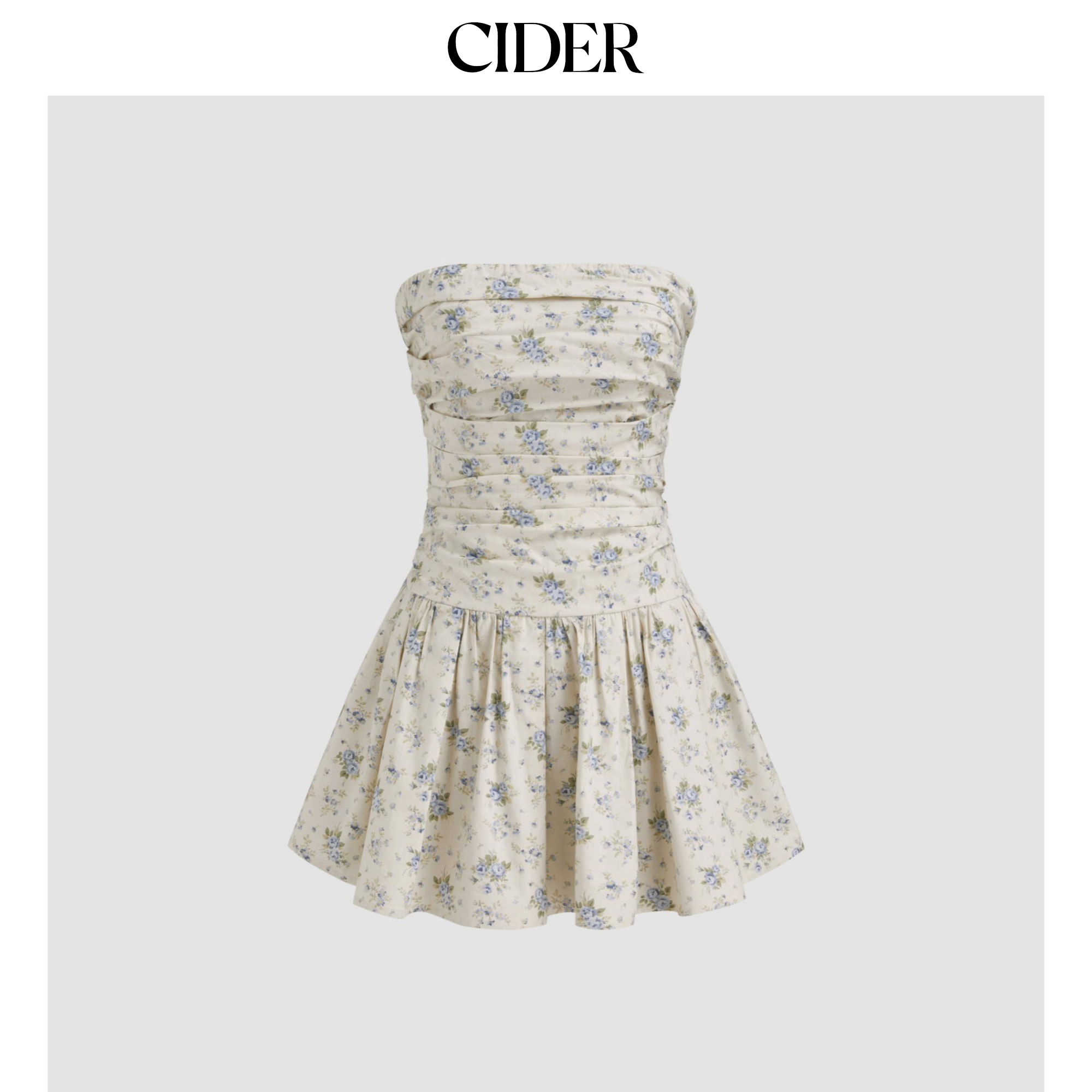 【明星同款】CIDER 连衣裙棉碎花褶皱抹胸短连衣裙114328990