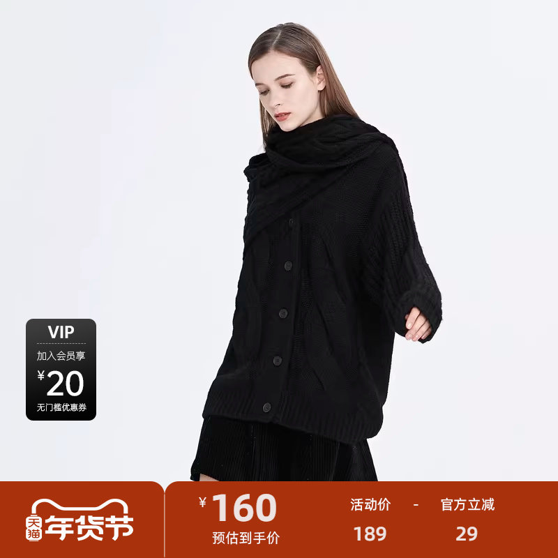 加厚版!慵懒风撞色单排扣毛衣开衫女冬季新款韩版宽松针织外套潮