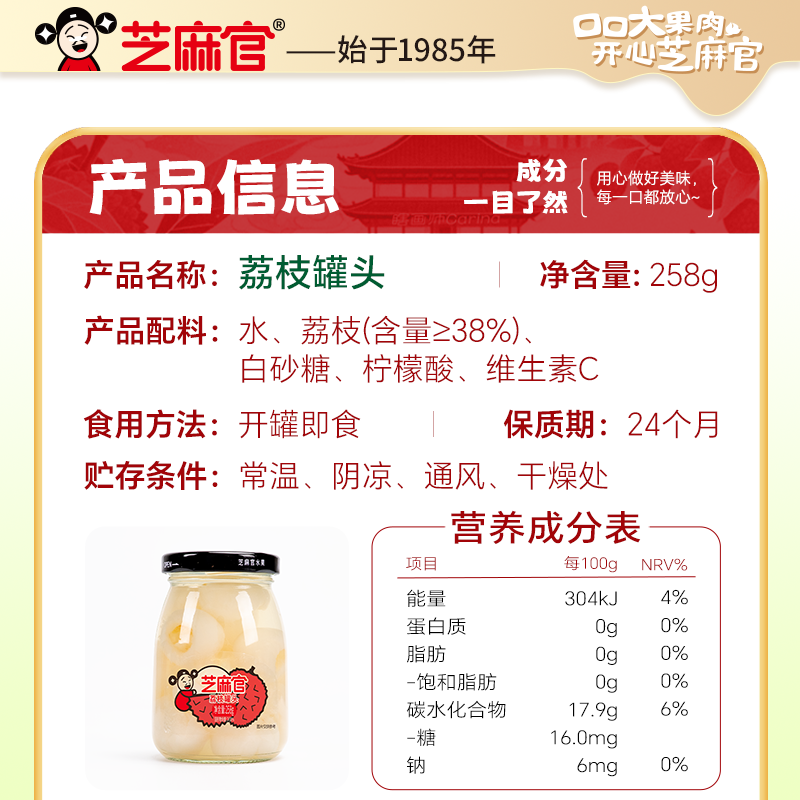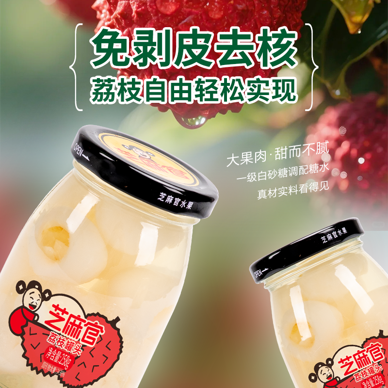 芝麻官荔枝罐头水果258g*6罐新鲜糖水荔枝罐头正品整箱