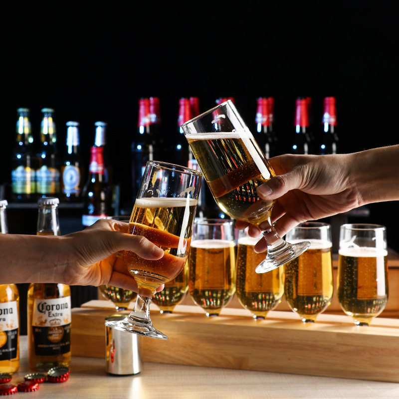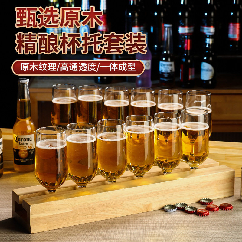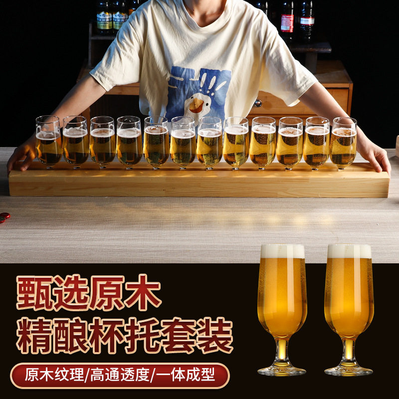 高脚杯酒吧精酿啤酒杯商用木杯托套装网红小酒馆玻璃清吧生啤杯架