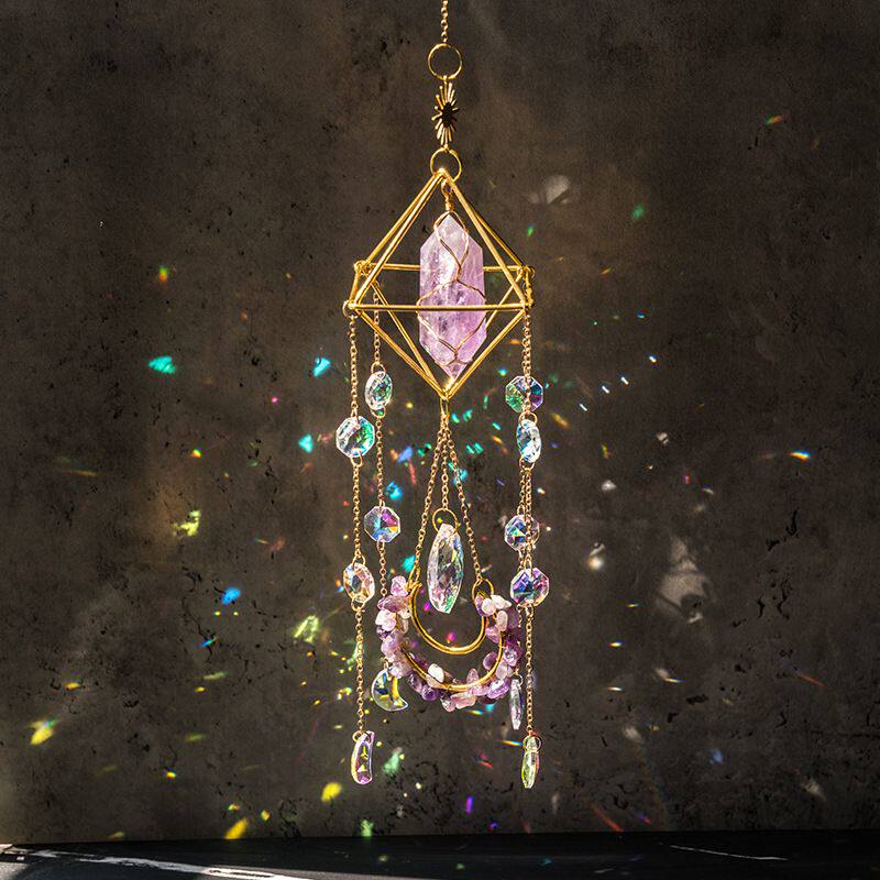 ins阳光水晶捕手太阳风铃光影房间窗户挂饰彩虹手工挂件户外风铃