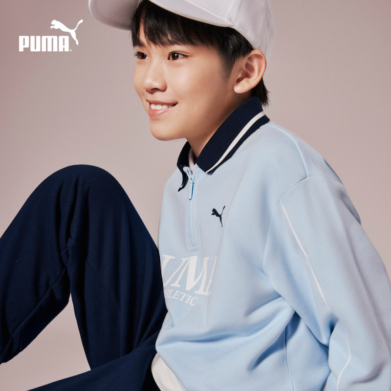 PUMA彪马童装新款儿童秋季长袖套装翻领半拉链两件套洋气运动服