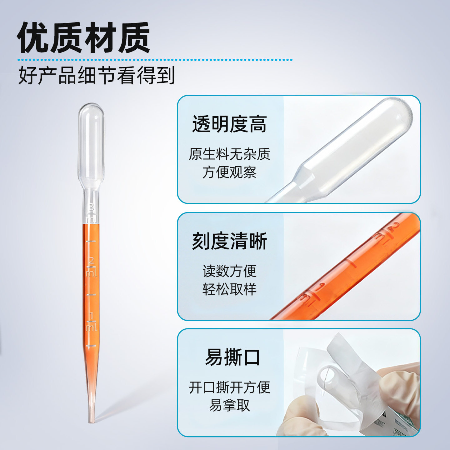 一次性塑料滴管吸管0.2ml/0.5/1/2/3/5/10ml 胶头滴管实验室无菌胶头试管小滴管带刻度滴管管子独立包装无菌