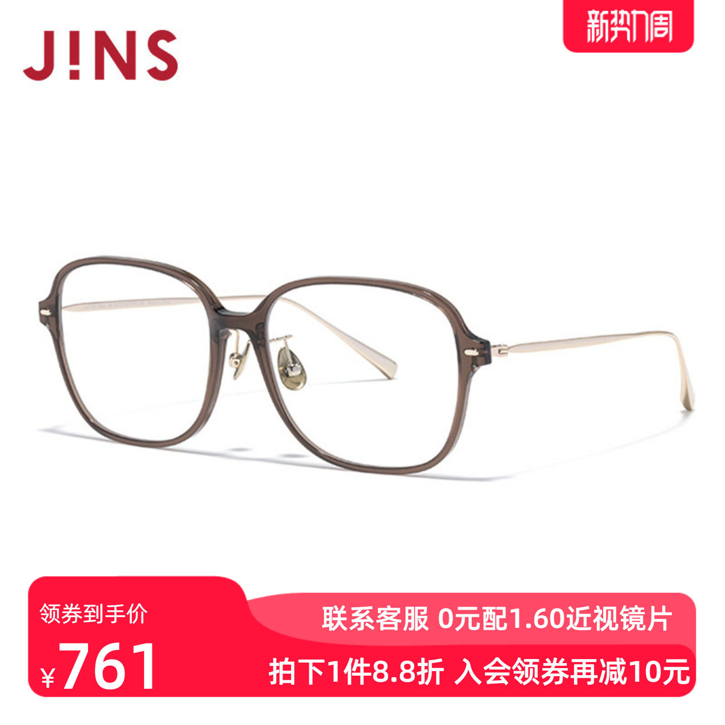 JINS睛姿近视眼镜休闲大方框β钛架男女可配防蓝光镜片UUF25S150