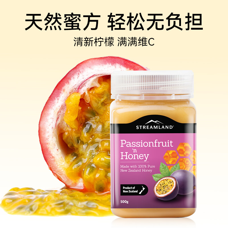 Streamland新溪岛百香果蜂蜜500g纯正新西兰进口水果蜂蜜honey
